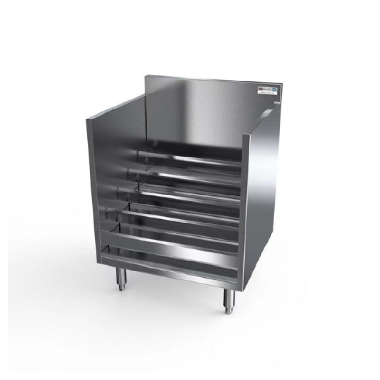 The NBR Equipment LDC-2421 Liquor Display Cabinet is engineered with five tiered steps designed to elegantly showcase liquor bottles, accommodating approximately 30 bottles. This display cabinet measures 24 inches wide by 21.25 inches front-to-back, with a height of 32.5 inches, providing ample space for a striking presentation in bars, restaurants, and retail environments. Constructed from high-quality 18/304 stainless steel, this unit offers exceptional durability and resistance to corrosion, ensuring longevity despite frequent use. The stainless steel legs are fitted with adjustable bullet feet, allowing for stability on uneven surfaces and adaptability to varying display needs. This cabinet is NSF certified, guaranteeing it meets rigorous public health and safety standards essential for food service environments. The NBR Equipment LDC-2421 is ideal for establishments looking to enhance their display aesthetics and maximize bottle visibility in a compact, stylish format. Its robust steel construction and precise dimensions make it a practical choice for any setting requiring an efficient and attractive display solution. Whether utilized in high-end cocktail lounges or bustling retail spaces, this liquor display cabinet offers a distinctive way to highlight a diverse selection of bottles, making it a valuable addition to any professional beverage service operation.