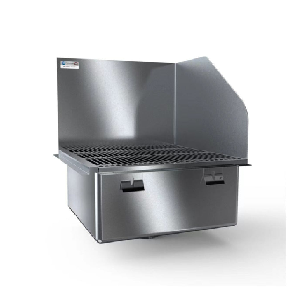 The NBR Equipment MSF-S24R Mop Sink Flush Floor Mount - recessed into floor - is meticulously crafted for seamless integration and maximum efficiency in commercial cleaning environments. Constructed from durable 16-gauge T304 stainless steel, this mop sink boasts a substantial size of 23.37 inches wide by 24 inches deep and 28.375 inches high. The 10-inch deep bowl is complemented by a 16-1/8 inch tall right side and rear splash guards, effectively containing water and debris. A standout feature is the removable stainless steel subway grating, designed to allow mop buckets to roll over the sink at floor level, enhancing ease of use and reducing physical strain. Additionally, the sink includes a removable stainless steel strainer basket, which aids in maintaining cleanliness and preventing clogs. The sink is equipped with a 4-inch O.D. waste pipe extending 3 inches tall, ensuring efficient drainage. This flush floor mount mop sink is ideal for various segments of the janitorial and sanitation industry, offering a robust and practical solution for maintaining high standards of cleanliness in busy commercial spaces.