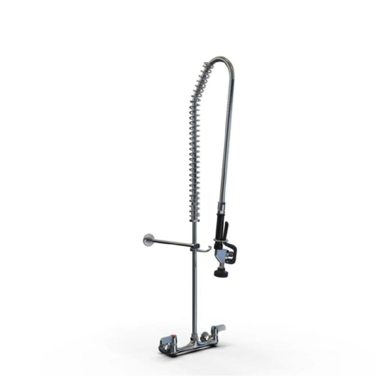The NBR Equipment P3W8-PU Faucet Wall Mount 8" Center is expertly designed for commercial kitchens, featuring a precise 8-inch center for easy installation and connectivity. This faucet is equipped with 1/2" NPT female inlets, ensuring compatibility with standard plumbing systems. Its 18-inch riser provides ample height, making it a versatile choice for varied tasks. The inclusion of a 44-inch flexible stainless steel hose allows for extensive reach and maneuverability, ideal for busy environments. The wall bracket and spray valve holder offer secure placement and convenient access, while the overhead spring ensures a consistent and controlled water flow. Importantly, the faucet complies with lead-free standards, aligning with health and safety guidelines crucial for the foodservice industry. Additionally, the NSF certification underscores its adherence to stringent public health protocols. This faucet is a reliable and efficient solution for professional kitchens, where functionality and compliance are paramount. Its robust construction and thoughtful design make it suitable for diverse market segments, including restaurants, hotels, and catering businesses, providing a valuable tool for maintaining high operational standards.