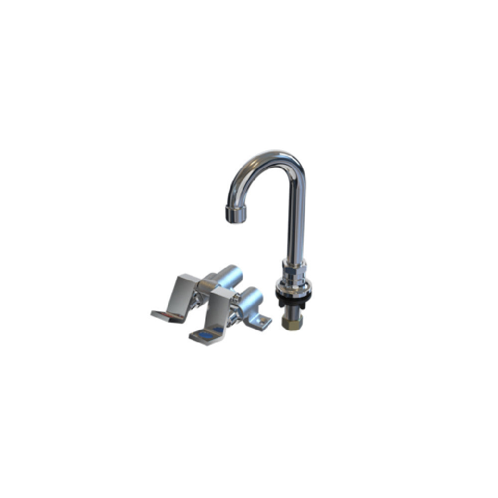 The NBR Equipment P5F2-DS3G Single Hole Deck Mount Foot Valve With 3-1/2" Gooseneck Spout is a specialized plumbing fixture designed for a range of commercial applications. This product features a single-hole deck mount, providing a streamlined installation that suits compact or space-conscious environments. The 3-1/2" gooseneck spout offers a practical design that facilitates ease of use while ensuring efficient water flow. A standout characteristic of this foot valve is its double pedal operation, allowing for hands-free use, which is essential in maintaining hygiene and convenience in busy kitchen or laboratory settings. Constructed to be lead-free, the P5F2-DS3G adheres to safety standards, making it suitable for environments where water safety is paramount. The product is NSF certified, ensuring it meets rigorous public health and safety standards, which is a critical consideration for industries such as food service or healthcare. The NBR Equipment P5F2-DS3G is engineered to meet the demands of various market segments, providing a reliable and efficient solution in environments where foot-pedal water control is a priority. Its combination of functionality, safety, and ease of use makes it a valuable component in any professional setting requiring precise water management solutions.
