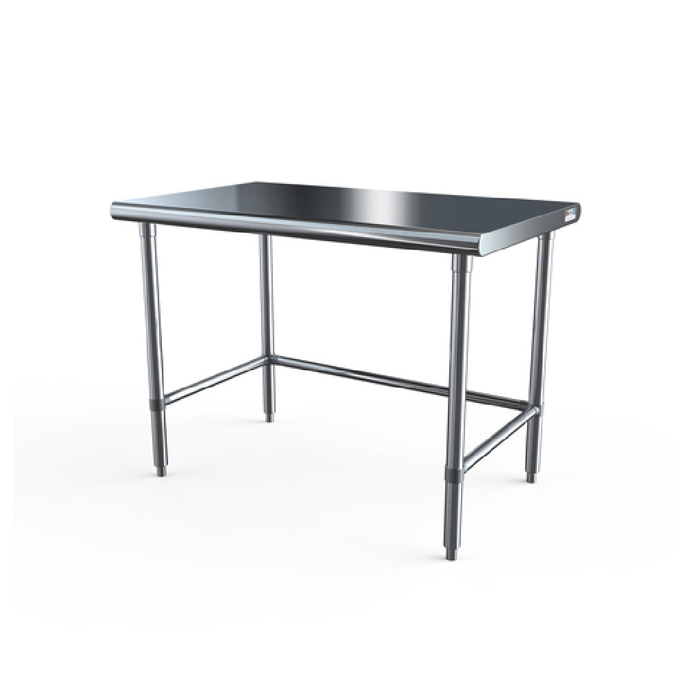 The NBR Equipment TS6-6030-X Premium Work Table is a meticulously designed workspace solution, measuring 60"W x 30"D x 35-3/4"H. This table features a 16/300 stainless steel flat top, ensuring exceptional durability and resistance to corrosion, making it an ideal choice for various industrial and commercial environments. The table is equipped with a 1-5/8" bullnose front and rear edge, providing a smooth and safe working surface. Supporting the table are four stainless steel legs, complemented by side and rear cross bracing for enhanced stability and structural integrity. The adjustable bullet feet allow for flexibility in leveling on uneven surfaces, ensuring a stable and secure work environment. Certified by NSF, this work table adheres to stringent public health and safety standards, making it suitable for use in kitchens, laboratories, and other professional settings. The NBR Equipment TS6-6030-X Premium Work Table is designed to meet the diverse needs of different market segments, from food service to manufacturing, offering a reliable and robust workspace solution for professionals who demand quality and performance.