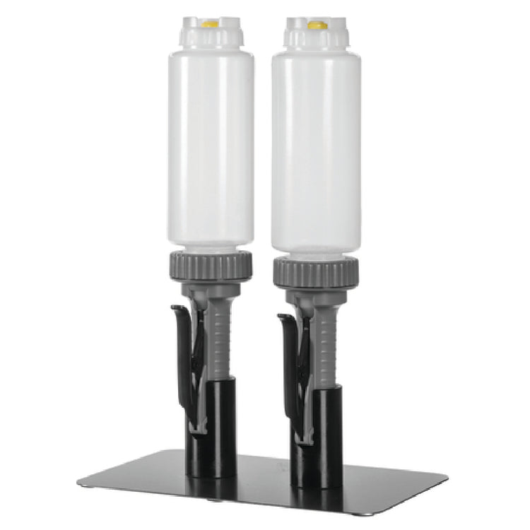 The Nemco 10982 Portion Pump Stand Double is an essential tool for food service operations, designed to enhance efficiency and precision in portion control. This versatile double portion pump stand is a part of Nemco Food Equipment's line, known for its reliability and performance in high-demand environments. With its robust construction, this pump stand can accommodate two pumps, allowing for the simultaneous dispensing of two different sauces, condiments, or dressings. This feature makes it particularly valuable for busy kitchens, catering services, and concession stands where quick service is critical. Its sturdy design ensures stability during use, minimizing spills and waste, which helps in maintaining a clean work environment. The Nemco 10982 is engineered for easy integration into existing setups, supporting both countertop and workstation configurations. Its user-friendly design allows for effortless cleaning and maintenance, ensuring compliance with strict hygiene standards. This product's adaptability makes it a perfect fit for a variety of segment markets, including fast-food chains, cafeterias, and food trucks, enhancing the overall service experience with its reliable performance and practical design.