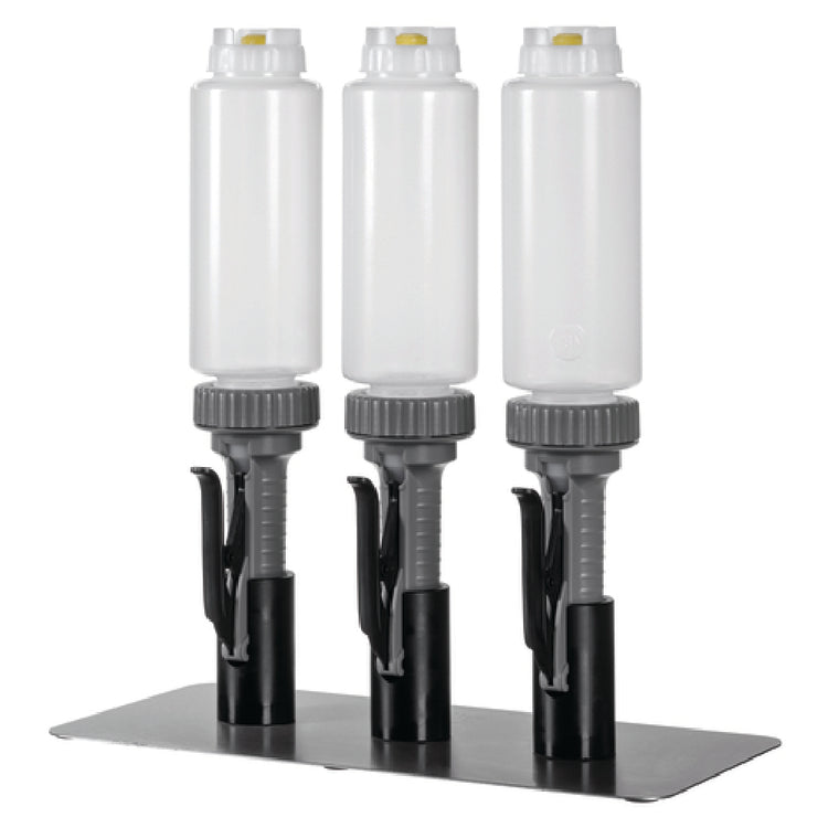 The Nemco 10983 Portion Pump Stand - Triple is a specialized unit designed for efficiency and convenience in food service operations, accommodating three portion pumps to streamline condiment dispensing. This stand is a perfect fit for settings that require quick and organized access to sauces, syrups, or other liquid condiments. By housing three pumps, it maximizes operational efficiency, particularly in high-demand environments such as cafeterias, catering services, and fast-food outlets. Its design enables seamless integration into workflows, reducing spillage and increasing speed of service. Constructed by Nemco Food Equipment, a trusted name in food service solutions, this device is crafted to endure frequent use while maintaining hygiene and precision. Its triple configuration allows versatile usage, effectively serving diverse segments within the industry, from large-scale events to daily dining operations. The Nemco 10983 Portion Pump Stand - Triple ensures that food service providers can meet consumer expectations with reliability and ease, promising efficiency in condiment management across various culinary settings.