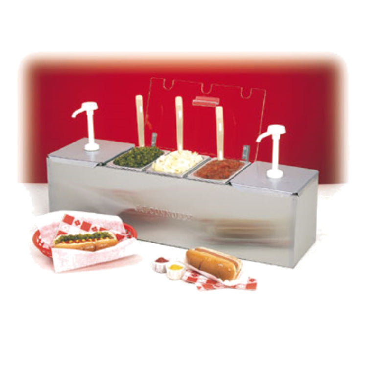 Nemco 88100-CB-3 Roll-A-Grill® Condiment Station 25.75"W X 8"D (2) 3 Qt. Stainless Steel Pans With Pumps
