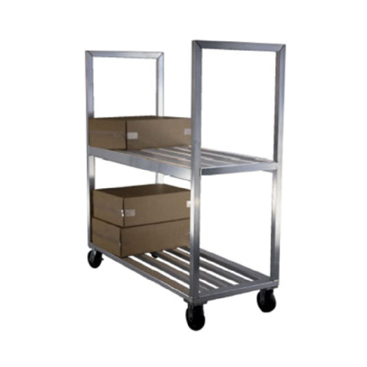 The New Age Industrial 1151 Truck Mobile Boxed Beef is a versatile and efficient solution for industries requiring robust storage and transport capabilities. This mobile unit is engineered with an all-welded aluminum construction, ensuring durability and resilience under heavy-duty use. With dimensions of 63 inches in width, 27 inches in depth, and 71 inches in height, it provides ample space across its two shelves. Each shelf is designed to accommodate substantial loads, with the entire unit boasting an impressive capacity of 2600 lbs. The mobility of this truck is facilitated by 6-inch platform casters, featuring two swivel casters with brakes and two rigid casters, enabling both smooth maneuverability and secure positioning when needed. Certified by the NSF, this product meets stringent health and safety standards, making it a reliable choice for food service environments. Proudly made in the USA, the New Age Industrial 1151 Truck Mobile Boxed Beef represents a significant asset for various sectors, offering exceptional utility in transporting and storing boxed beef and other substantial items. Its design emphasizes functionality and durability, catering to the high demands of industrial and commercial settings that value quality and efficiency.