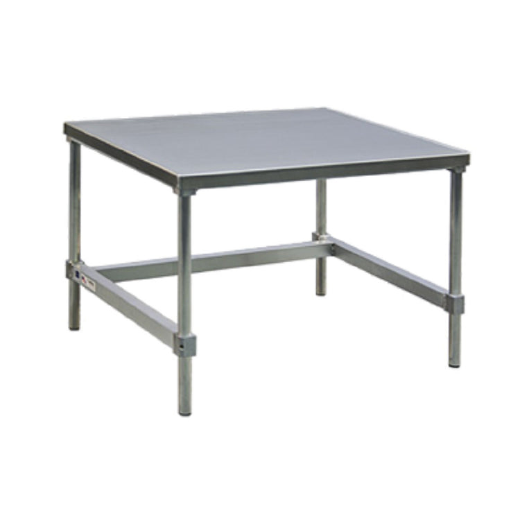 The New Age Industrial 12436GS Equipment Stand - 36"W x 24"D x 24"H - is a highly versatile and robust piece of equipment designed for various industrial applications. Its standout feature is the removable 12-gauge top with a marine edge, ensuring both durability and ease of maintenance. With a remarkable capacity of 1000 lbs., this equipment stand is built to support heavy-duty equipment efficiently. Its open base design enhances functionality and accessibility, catering to dynamic work environments. Constructed from fully welded aluminum, the 12436GS ensures longevity and resilience, making it a reliable choice for industries that prioritize equipment stability and durability. Additionally, the equipment stand is NSF certified, highlighting its compliance with stringent public health and safety standards. The knock-down (KD) design offers convenience in transport and assembly, while its origin of manufacture in the USA assures high-quality craftsmanship. This equipment stand is particularly beneficial for sectors such as food service, laboratories, or any industrial setting that demands robust and adaptable support equipment. Its technical precision and structural integrity set it apart as a valuable asset in environments that require dependable support solutions.