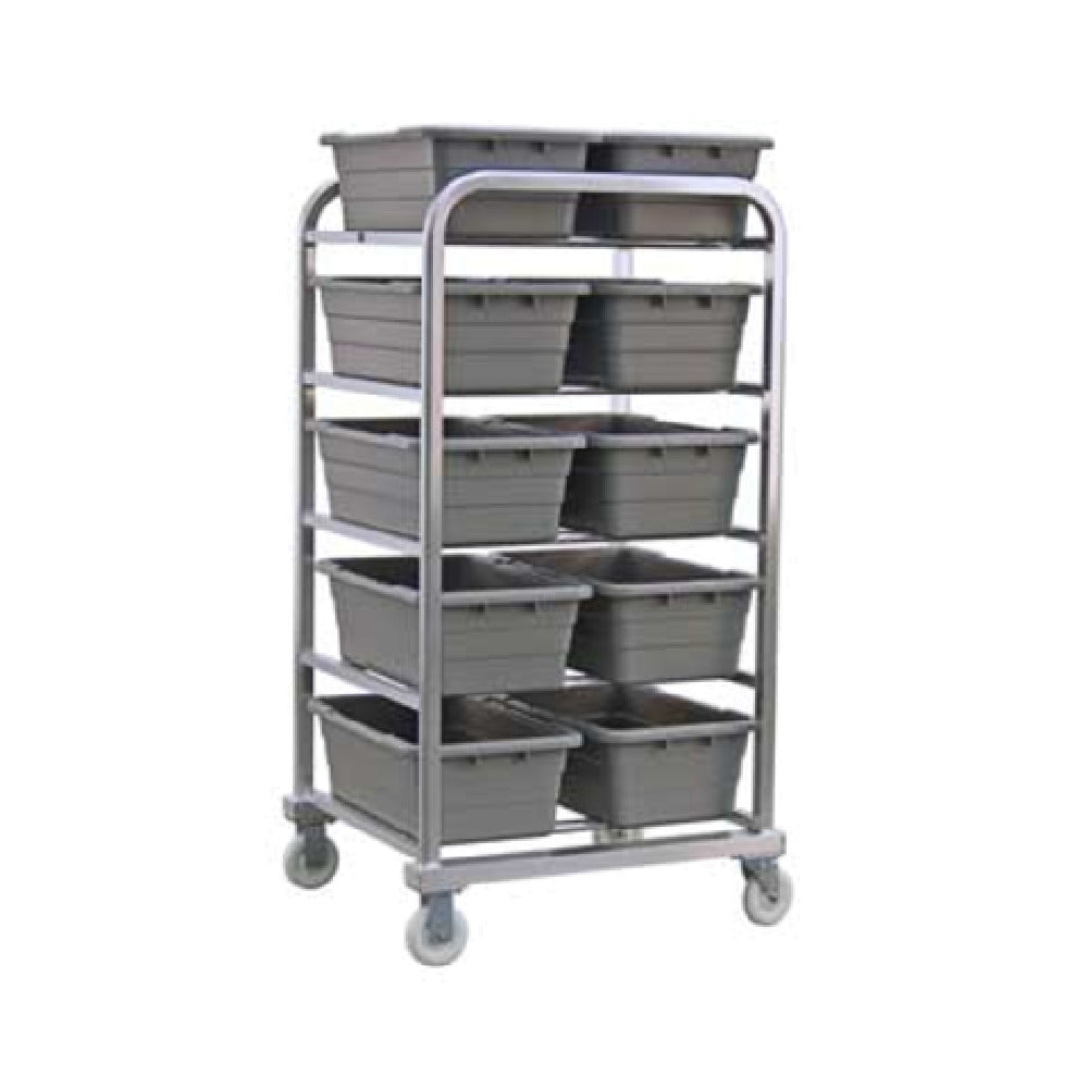 The New Age Industrial 1264 Lug Dolly Heavy Duty 10-lug Capacity is an industrial-grade solution designed to meet the rigorous demands of material handling across various sectors. With a capacity to hold 10 lugs, each measuring 15-1/2" x 25" x 8-3/4", this dolly provides substantial support for transporting large loads efficiently. Crafted from aluminum with an all-welded construction, its durability ensures long-lasting performance in high-volume environments. This dolly is equipped with four 5" platform swivel casters, offering exceptional mobility and maneuverability, making it ideal for use in tight spaces or dynamic work areas. As a product made in the USA, it meets high manufacturing standards, and its NSF certification confirms its adherence to strict public health and safety guidelines. The New Age Industrial 1264 Lug Dolly is an invaluable asset for industries such as food service, manufacturing, and logistics, where reliable, heavy-duty material transport equipment is essential. Its robust design and high-capacity features set it apart, catering to businesses that require both efficiency and durability in their operations.