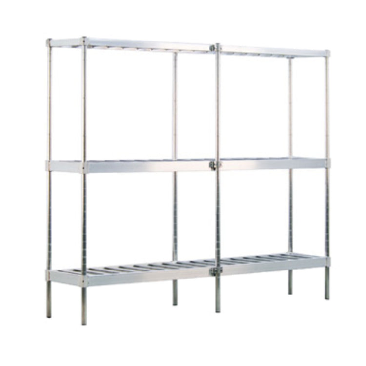 The New Age Industrial 1289 Keg Rack is a meticulously designed storage solution, offering impressive versatility with its ability to accommodate either 10 half-barrel kegs or 34 sixth-barrel kegs. Measuring 93 inches in width, 18 inches in depth, and 76 inches in height, this rack is equipped with three sturdy "T"-Bar shelves, each crafted from durable aluminum to ensure longevity and stability. This robust construction is NSF certified, reflecting its adherence to the highest safety and hygiene standards, an essential feature for establishments in the food and beverage industry. Proudly made in the USA, the New Age Industrial 1289 Keg Rack combines strength and practicality, making it an ideal choice for breweries, bars, and restaurants that require efficient keg storage solutions. Its thoughtful design caters to a wide range of storage needs, ensuring that kegs are securely held while allowing easy access and organization within your facility.