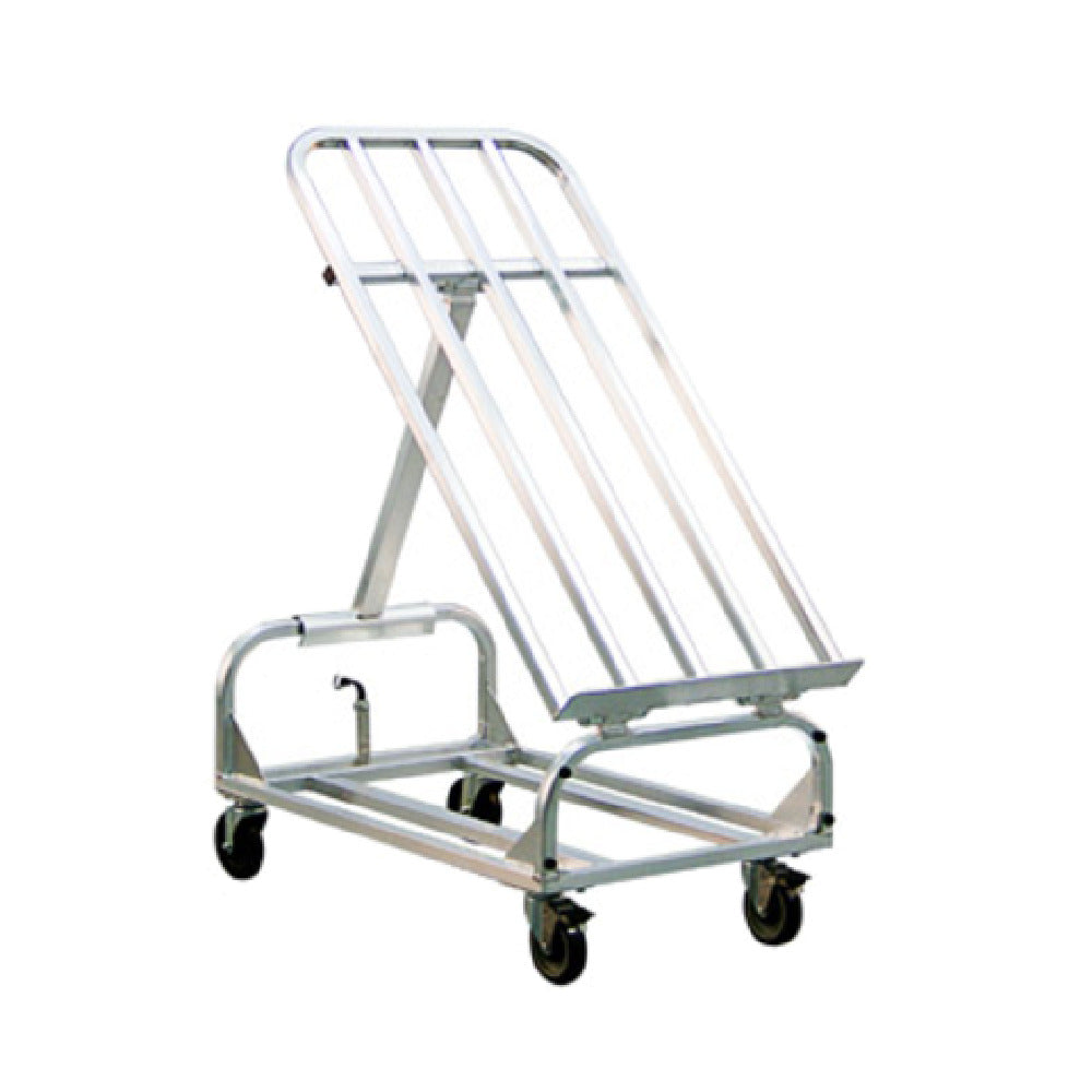 The New Age Industrial 1407 Merchandising Rack stands out for its functionality and robust design, measuring 43"W x 24"D, it is crafted from durable aluminum, ensuring longevity and resilience in various commercial environments. This merchandising rack features a versatile top that can be adjusted between a slope or flat position, allowing for adaptable use in showcasing products effectively. The mobility of the rack is enhanced by its caster design - equipped with two 2" x 5" rigid casters with brakes and two 1-3/8" x 5" swivel casters, facilitating easy movement and secure placement. The rack's flat storage size makes it efficient to use in space-conscious settings. Made in the USA, this product reflects high-quality manufacturing standards. The New Age Industrial 1407 Merchandising Rack is particularly beneficial for industries such as retail, hospitality, and food services, where both display versatility and mobility are crucial. Its sturdy aluminum construction and adjustable features cater to the unique needs of businesses looking to enhance product visibility and accessibility while maintaining a professional and organized appearance. This rack represents a strategic investment for businesses aiming to optimize their merchandising capabilities.