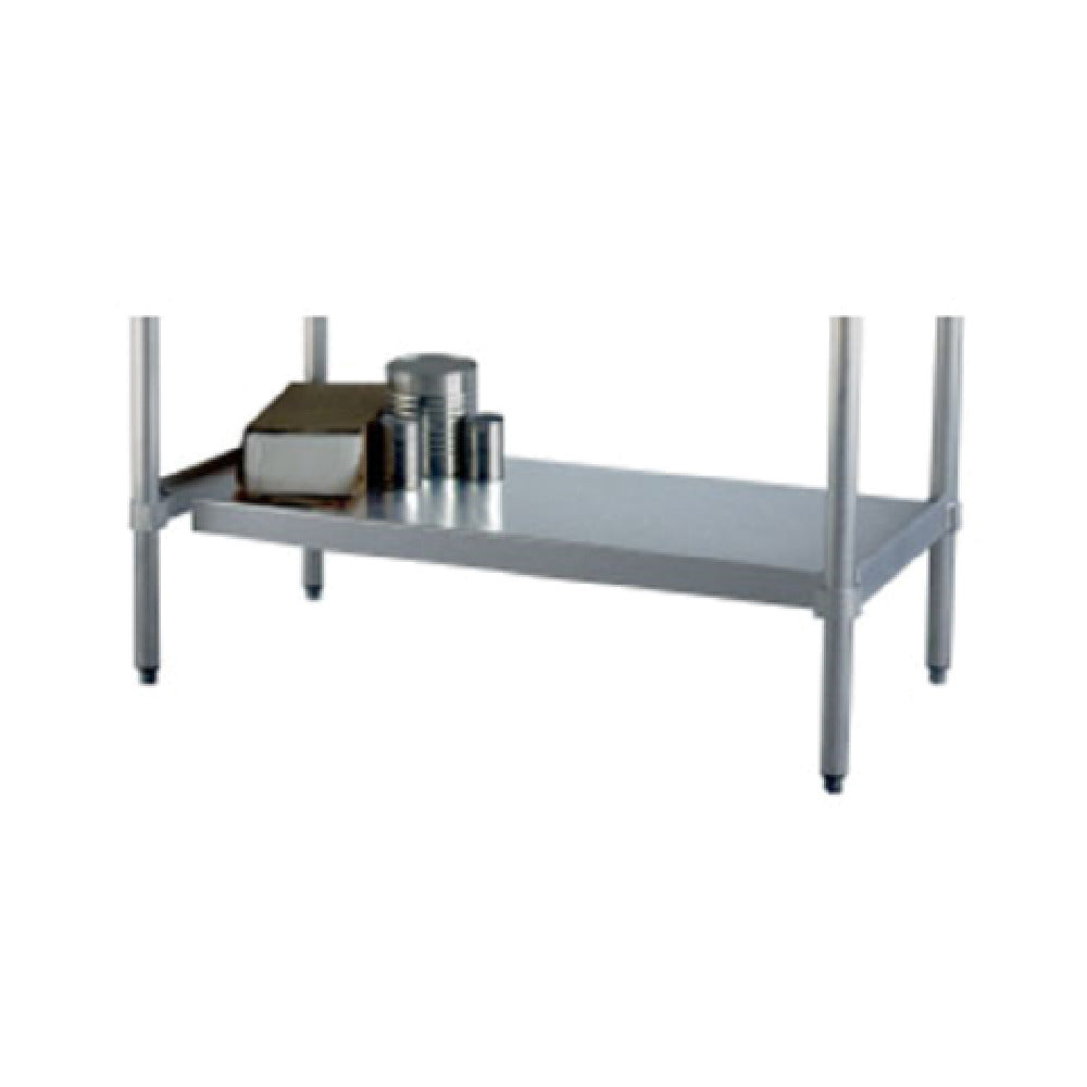 The New Age Industrial 24US60KD Undershelf For Work Table 60"W x 24"D Aluminum is a precision-engineered accessory designed to enhance the functionality and organization of professional workspaces. Measuring 60 inches in width and 24 inches in depth, this undershelf is crafted from durable aluminum, ensuring a lightweight yet sturdy construction capable of supporting various equipment and supplies. As a Knock-Down (KD) unit, it offers easy assembly and disassembly, catering to dynamic work environments where adaptability is key. This undershelf is NSF certified, signifying its adherence to the highest public health and safety standards, making it suitable for use in food service and other hygiene-critical industries. Proudly made in the USA, the New Age Industrial 24US60KD underscores a commitment to quality craftsmanship. Designed for integration with compatible work tables, it provides invaluable additional storage space in commercial kitchens, laboratories, and industrial settings, allowing for optimized workflow and organization. Its specification aligns with the needs of diverse market segments, from small eateries to large-scale production facilities, offering a practical and reliable solution for enhancing workspace efficiency and storage capabilities.