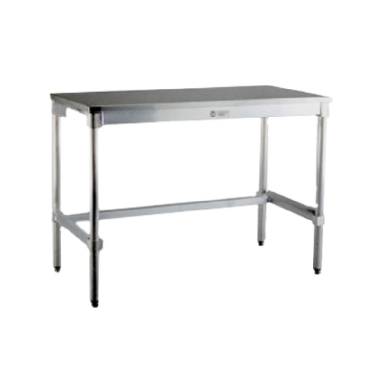 The New Age Industrial 30SS96KD Work Table stands out with its expansive dimensions of 96"W x 30"D, crafted specifically for various industrial and commercial applications. Its aluminum construction is complemented by a robust 16/304 stainless steel top, ensuring durability and resistance to corrosion, making it a reliable choice in demanding environments. The open base design integrates side and rear cross-bracing, which enhances stability while allowing for versatile storage options underneath the work surface. This table is equipped with adjustable bullet feet, enabling precise leveling on uneven floors, which is crucial for maintaining a stable work environment. Certified by NSF, this work table meets stringent health and safety standards, making it suitable for use in food service settings that require adherence to hygiene protocols. The KD (knock-down) feature indicates that the table is designed for easy assembly and disassembly, which can be particularly advantageous for businesses that require flexibility in their workspace arrangements. Proudly made in the USA, the New Age Industrial 30SS96KD Work Table reflects a commitment to quality manufacturing and innovative design, making it an essential asset for industries ranging from food service to manufacturing, where sturdy and efficient workspaces are paramount.