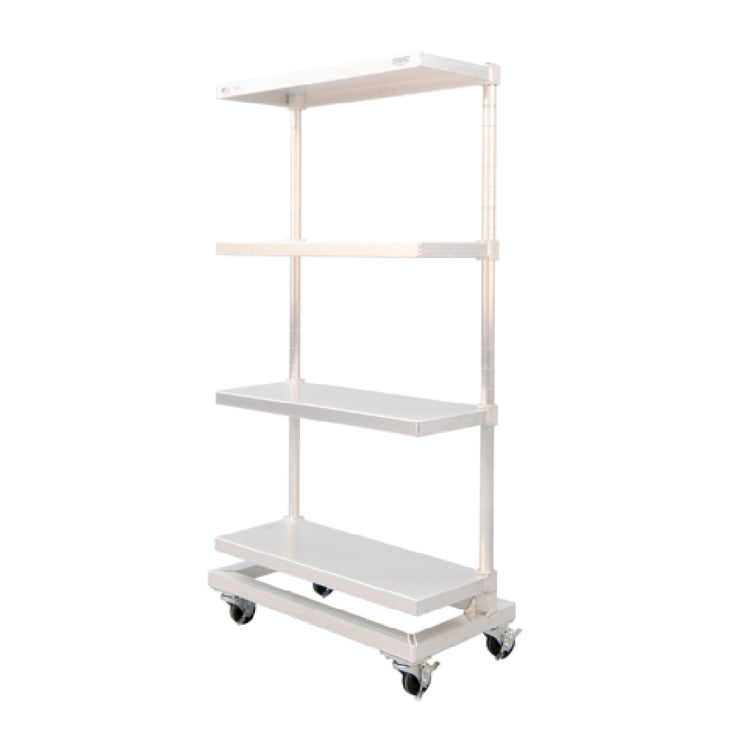 The New Age Industrial 53315 To-Go Shelving Unit is a versatile and mobile storage solution designed to accommodate various industry needs with its robust technical specifications. Measuring 30"W x 16"D x 60"H, this unit offers ample space for organized storage, making it suitable for environments that require efficient use of vertical space. It features solid adjustable shelves, allowing users to customize the spacing according to their specific requirements, providing flexibility for different types of stored items. The unit is equipped with four 3" x 1-3/8" platform swivel casters, including brakes (C408), ensuring easy mobility and secure placement when needed. Constructed from durable aluminum, this shelving unit combines lightweight maneuverability with strength and longevity, making it ideal for sectors such as food service, retail, and warehousing where adaptability and reliability are paramount. Its mobility and adjustable features make it a valuable asset for operations that frequently change layouts or need quick reconfigurations. By integrating these carefully considered features, the New Age Industrial 53315 To-Go Shelving Unit effectively supports dynamic storage solutions, catering to the ever-evolving demands of modern industry environments.