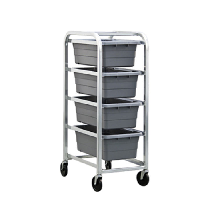 The New Age Industrial 6262 Lug Dolly Open Frame is a versatile and robust transportation solution tailored for various industry segments requiring efficient handling of substantial loads. This lug dolly is meticulously crafted with all-welded aluminum construction, offering durability and longevity in demanding environments. Measuring 19-3/4 inches in width, 26-3/4 inches in depth, and standing at 51 inches high, it provides ample space to accommodate four lugs, each with dimensions of 16 inches wide, 25 inches deep, and 8-1/2 inches high. Equipped with four 5-inch swivel stem casters, the New Age Industrial 6262 Lug Dolly ensures smooth and agile maneuverability, enabling easy transportation across different surfaces. Certified by the National Sanitation Foundation (NSF), this lug dolly adheres to rigorous health and safety standards, making it suitable for food service operations and other sectors where cleanliness is paramount. Proudly made in the USA, the New Age Industrial 6262 Lug Dolly Open Frame exemplifies American manufacturing excellence, offering a reliable and efficient material handling solution for businesses seeking to optimize their operational workflow without compromising on quality or performance.
