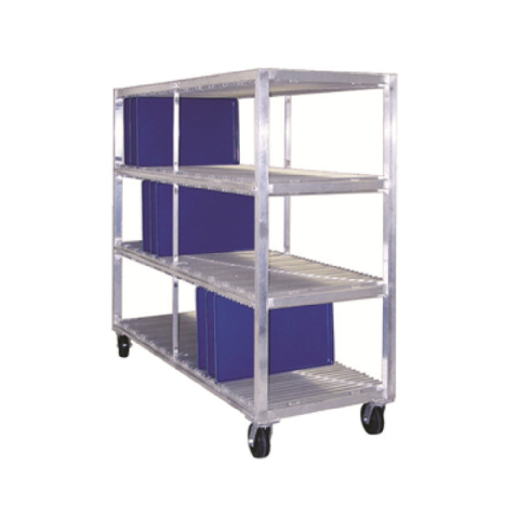 The New Age Industrial 96710 Tray Drying Rack Mobile 3 Tray Levels is a highly efficient solution for commercial kitchens requiring organized tray management. With dimensions of 28-1/2"D x 64"H x 75-1/2"W, this rack maximizes space utilization while accommodating up to 288 trays. It features three tray levels with an angle spacing of 1-2/5 inches, ensuring ample drying room for each tray. Constructed with an all-welded frame, this unit provides robustness and longevity, essential for high-demand environments. It includes drainage wells, facilitating efficient water evacuation and maintaining hygiene standards. Mobility is enhanced by four 6" x 2" polyolefin platform swivel casters, which are equipped with tamper-proof fasteners to ensure stability and ease of movement across various surfaces. The rack is NSF certified, indicating its compliance with food safety and sanitation standards, and is proudly manufactured in the USA. This drying rack is a custom unit, requiring a sample tray with the order, and returns are not accepted. The New Age Industrial 96710 is an indispensable asset for restaurants, bakeries, and catering businesses, providing a reliable and spacious solution for tray drying and storage needs.