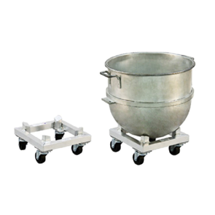 The New Age Industrial 99936 Mixing Bowl Dolly is a meticulously engineered solution designed to meet the demanding needs of commercial kitchens and bakeries. With dimensions of 14" x 14" x 7-9/16", this dolly is crafted from durable aluminum construction, ensuring both strength and longevity. It is specifically designed to accommodate an 80-quart bowl, although the mixing bowl itself is not included with the dolly. The dolly boasts an impressive weight capacity of 800 lbs, making it an ideal choice for heavy-duty use in busy kitchen environments. Equipped with four 3" platform casters, identified as #C410, it offers exceptional mobility and maneuverability, allowing for seamless transport of large mixing bowls across workspaces. This product is NSF certified, highlighting its adherence to stringent public health and safety standards. Proudly made in the USA, the New Age Industrial 99936 Mixing Bowl Dolly exemplifies quality craftsmanship and is a valuable asset for any food service establishment requiring efficient and reliable mixing bowl transportation. Its robust construction and thoughtful design cater to various market segments within the food industry, underscoring its role as an essential tool in enhancing kitchen productivity and efficiency.
