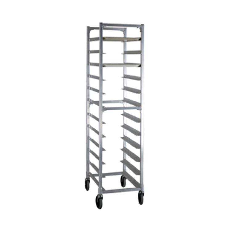 The New Age Industrial NS832 Tray Rack Mobile Full Height is a robust and versatile storage solution designed for efficient tray organization in commercial settings. This full-height tray rack features open sides and is built to accommodate 12 trays measuring 15" x 20", with slides positioned on 5" centers, making it ideal for large-scale food service operations. The rack's all-welded aluminum construction ensures durability and longevity, while also being lightweight and easy to maneuver. It is equipped with 5" stem casters, enhancing its mobility across different kitchen environments. Designed for end loading, this tray rack facilitates seamless access and handling of trays. The New Age Industrial NS832 is NSF certified, highlighting its compliance with health and safety standards, which is crucial for maintaining hygiene in food service applications. Proudly made in the USA, this tray rack is a reliable choice for catering companies, bakeries, and institutional kitchens that demand high performance and reliability from their storage equipment. Its thoughtful design and quality construction make it a valuable asset in any professional culinary setting, where organization and space optimization are critical.