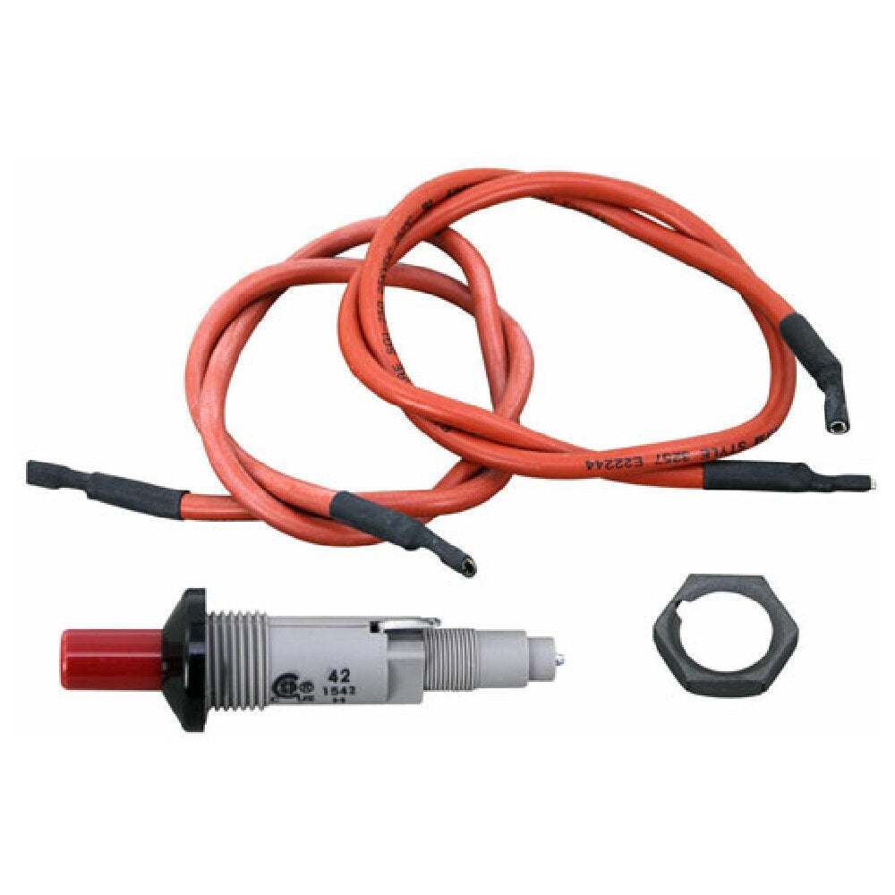 Nieco NC4181 Piezo Ignitor W/ Dual Lead Wires. Fits 3/4" Hole., Includes Orange Electrode Wire Lead 20" Wire 1/8" Round, Female Push-on X 1/8" Flat Female Push-on # 38-1556, Orange Ground Wire Lead 20" Wire 1/8" Flat Female Push-ons, At Both Ends # 38-1555, For Electrode # 44-1527, Nieco Broiler 940 960 962., Series 300 400 500 600 800.
