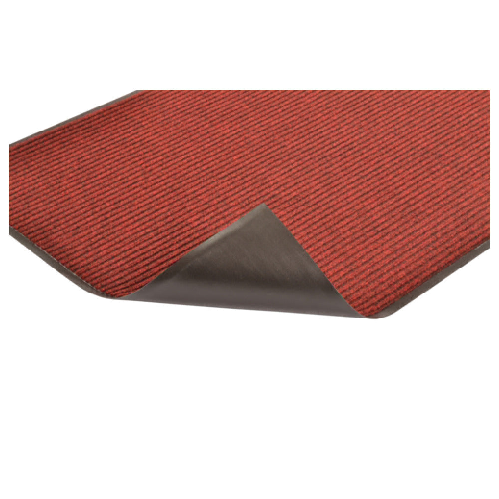 The Notrax 109S0035RB 109 Brush Step Scraper Floor Mat is a meticulously engineered floor mat, sized at 3' x 5' with a thickness of 3/8", tailored for industry professionals seeking durability and functionality in high-traffic areas. Composed of 100% polypropylene, this mat is crafted with a ribbed surface that excels in scraping dirt and debris from footwear, helping maintain clean and safe environments. The integration of a vinyl back enhances stability, ensuring the mat remains securely in place during use. Its 1-inch solid vinyl border further accentuates the mat's robustness and durability, contributing to its longevity in demanding settings. The mat’s fade-resistant red/black color scheme not only provides an aesthetic appeal but also assures sustained visual integrity, even under prolonged exposure to harsh conditions. Packaged conveniently in a boxed format, the Notrax 109S0035RB finds its niche in commercial spaces, office buildings, and industrial environments where maintaining cleanliness is paramount. Such features collectively underscore the mat’s utility across various sectors, including hospitality, retail, and manufacturing, where heavy foot traffic necessitates reliable floor protection solutions.