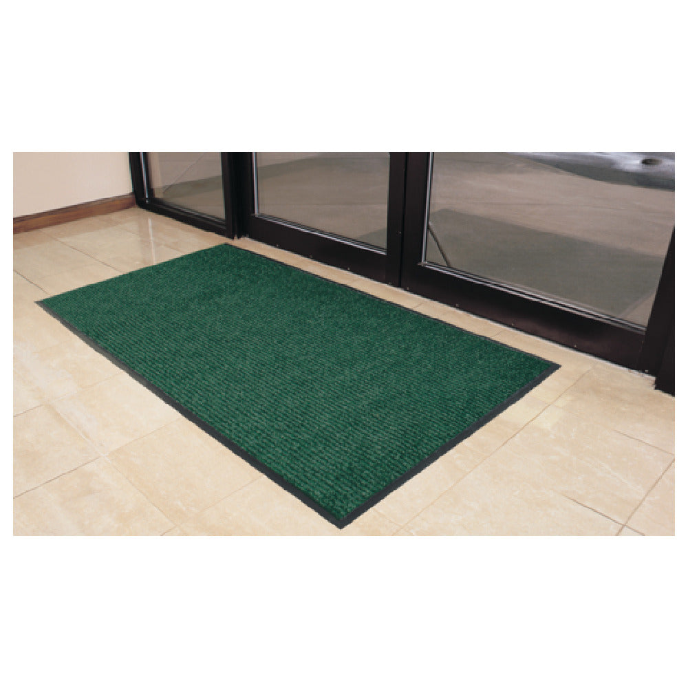 The Notrax 109S0310GN 109 Brush Step Scraper Floor Mat is designed with durability and performance in mind, making it an excellent choice for diverse environments that demand high-quality floor protection. Measuring 3 feet by 10 feet and with a thickness of 3/8 inches, this mat is crafted from 100% polypropylene, a material known for its resilience and ability to withstand heavy foot traffic. The ribbed design enhances its scraping capability, effectively capturing dirt and debris to maintain cleanliness in high-traffic areas. It features a solid vinyl backing, adding stability and preventing movement, while the 1-inch solid vinyl border provides a sleek finishing touch. The hunter green color not only adds an aesthetic appeal but is also fade-resistant, ensuring longevity and sustained appearance in both indoor and outdoor settings. Boxed for convenience, the Notrax 109S0310GN mat is suitable for commercial entrances, industrial workspaces, or retail environments looking to enhance cleanliness and safety. This makes it a practical solution for facility managers and business owners seeking a reliable option to protect floors and maintain a professional look.