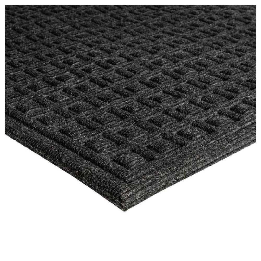 The Notrax 152S0046CH 152 Waffle CTE™ Entrance Mat measures 4 feet by 6 feet with a thickness of 3/8 inches, making it an essential component for indoor entryways aiming to maintain cleanliness and safety. Designed with a high/low waffle pattern, this entrance mat excels at scraping dirt and moisture from footwear, minimizing slip hazards and preserving interior flooring. The raised rubber carpet-to-edge (CTE™) feature, coupled with bordered sides, provides an enhanced edge-to-edge grip, preventing the mat from curling or slipping. Its crumb rubber backing adds durability and ensures the mat remains securely in place, even in high-traffic areas. Offered in a versatile charcoal color, the Notrax 152 Waffle CTE™ Entrance Mat complements various interior designs while providing practical functionality. This product is particularly valuable for commercial buildings, retail stores, and office spaces where controlling dirt and moisture is critical to maintaining a professional and safe environment. The combination of effective dirt and moisture control with durable construction positions the Notrax 152S0046CH as a reliable choice for facility maintenance across diverse industry segments.