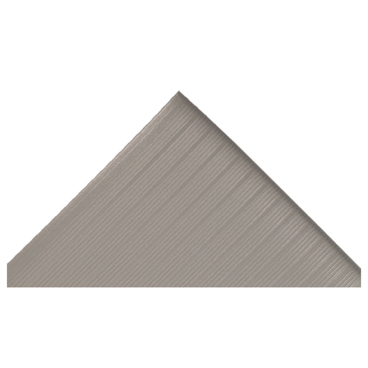 The Notrax 410R0324GY 410 Airug Anti-Fatigue Floor Mat is a premium solution designed to enhance comfort and safety in various professional environments. Measuring 2' x 60' in a roll format and offering a substantial 3/8" thickness, this mat is crafted from ribbed foam vinyl, providing both durability and resilience. Its textured base ensures stability, reducing the risk of slips and enhancing grip on a variety of surfaces. The gray color of the Notrax 410R0324GY adds a neutral aesthetic that can seamlessly integrate into diverse settings, from industrial to commercial spaces. This anti-fatigue mat is specifically engineered to alleviate discomfort for individuals standing for extended periods, making it ideal for assembly lines, workstations, and retail environments. Its ergonomic benefits can lead to increased productivity and reduced strain on feet and legs. The mat's roll format allows for easy customization to fit different floor layouts and space requirements. Notrax's commitment to quality is reflected in this product, designed to meet the needs of businesses seeking reliable, long-lasting floor solutions. The 410 Airug Anti-Fatigue Floor Mat is a practical investment for any industry segment that prioritizes employee comfort and workplace safety.
