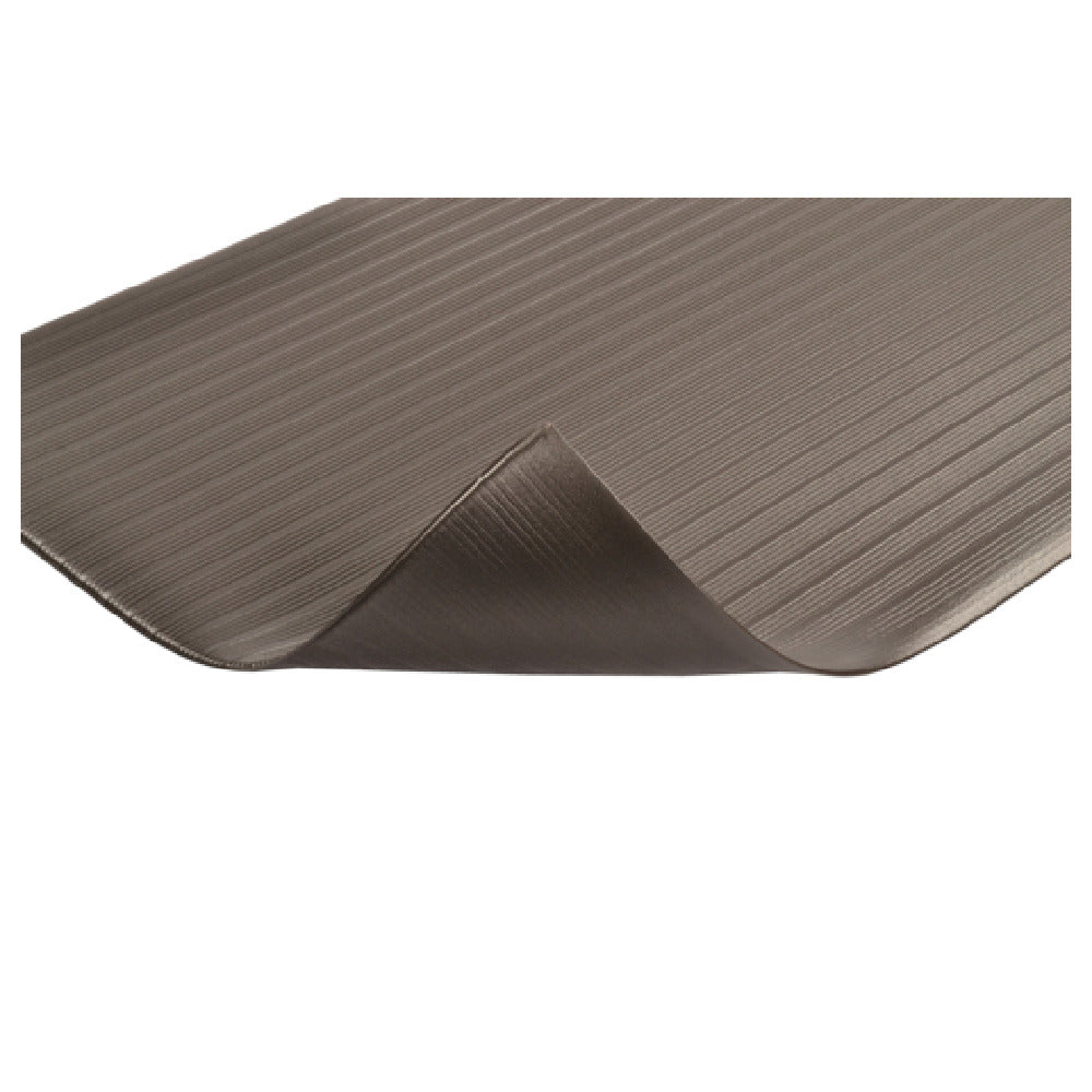Notrax 410S0523BL 410 Airug Anti-Fatigue Floor Mat 2' x 3' 5/8" thick is an essential solution for enhancing workplace comfort and safety in various industrial and commercial environments. Crafted from ribbed foam vinyl, this mat provides a comfortable standing surface designed to alleviate fatigue during prolonged standing periods. Its textured base ensures stability, minimizing the risk of slips and falls, thereby promoting a safer work environment. Ideal for use in factories, workshops, or retail spaces, the mat’s dimensions of 2 feet by 3 feet make it a versatile fit in numerous settings, while its 5/8" thickness offers ample cushioning. The sleek black finish not only complements diverse interior designs but also signifies durability and practicality. Packed in a box, this mat is easy to transport and install, making it a convenient choice for businesses looking to improve employee well-being and productivity. By effectively combining ergonomic support with safety features, the Notrax 410 Airug Anti-Fatigue Floor Mat serves as a valuable addition to any workplace focused on maintaining health and efficiency standards.