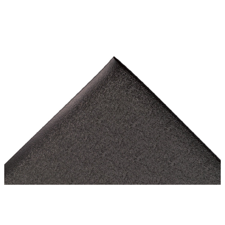 The Notrax 411R0336BL 411 Sof-Tred Anti-Fatigue Floor Mat is a practical solution designed for environments where prolonged standing is necessary, delivering comfort and durability. Measuring 3 feet by 60 feet, this mat provides ample coverage for larger workspaces. It features a 3/8-inch thickness, offering substantial cushioning to alleviate fatigue. Crafted from pebble foam vinyl, the mat combines softness with resilience, enhancing the user experience by reducing stress on feet, knees, and legs. The textured base ensures stability, minimizing the risk of slipping, which is critical in busy environments. Presented in a sleek black color, it integrates seamlessly into various settings, from industrial spaces to offices. The Notrax 411 Sof-Tred Anti-Fatigue Floor Mat is ideal for professionals across multiple industries, including manufacturing, laboratories, and retail, where comfort and safety are paramount. Its robust vinyl construction ensures longevity, even under heavy use, providing a reliable anti-fatigue solution. By incorporating this mat, businesses can enhance workplace comfort, increase productivity, and promote employee well-being. This product exemplifies Notrax's commitment to quality and innovation in ergonomic flooring solutions, catering to the specific needs of diverse professional environments.