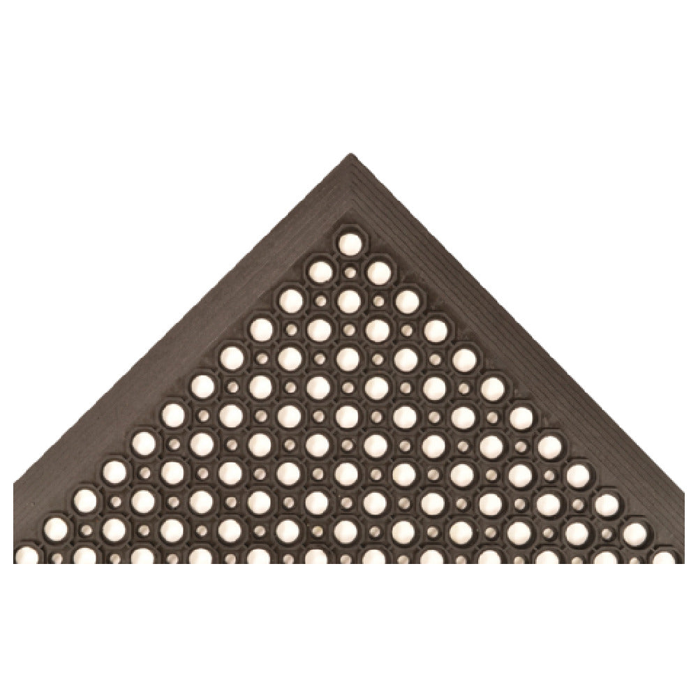 The Notrax 562U0035BL 562 Sanitop® General Purpose Floor Mat is a versatile and practical solution for various industrial and commercial environments. Measuring 3 feet by 5 feet and featuring a thickness of 1/2 inch, this floor mat is designed to provide superior comfort and safety underfoot. Crafted from durable rubber, the mat ensures longevity and resilience, making it an ideal choice for high-traffic areas. Its lightweight design facilitates easy handling and installation, while the built-in beveled edge reduces the risk of tripping, enhancing safety in busy workspaces. The floor mat's black finish offers a sleek and professional appearance, suitable for a range of settings from kitchens to production lines. The Notrax 562U0035BL, though unboxed, retains its functional integrity, offering an efficient floor covering solution that balances durability with ease of use. Its technical specifications make it well-suited for industries that require robust flooring solutions that can withstand continuous use while providing comfort and safety. This product stands out in its category for its blend of practicality and safety features, crafted to meet the demands of diverse market segments that rely on reliable and efficient floor protection.