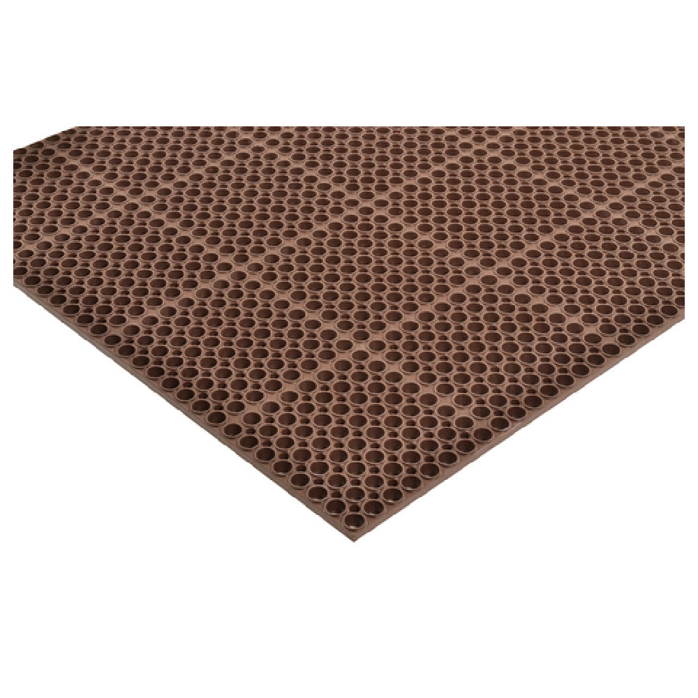 The Notrax T12S3929BR T12 San-EZE® Grease-Resistant Floor Mat stands as a reliable solution for environments requiring durable flooring with specific grease-resistant properties. Measuring 39 inches by 29-1/4 inches with a substantial thickness of 7/8 inch, this floor mat is crafted from anti-fatigue rubber, making it suitable for areas where workers stand for extended periods. Its brown color integrates seamlessly into various settings, providing both functionality and aesthetic appeal. This mat is NSF certified, ensuring it meets public health and safety standards, which is crucial for industries like food service and hospitality. Unlike bulkier options, the Notrax T12S3929BR is available in smaller quantities, offering flexibility for businesses with varying needs and spatial constraints. Packaged in a boxed format, it is easy to handle and install, enhancing its practicality for diverse applications. The product’s design and certification make it an ideal choice for commercial kitchens, industrial workshops, and other high-traffic areas where slip resistance and comfort underfoot are essential. Its construction not only combats grease but also supports a safer and more ergonomic workspace, demonstrating its unique value across different market segments where quality flooring solutions are paramount.