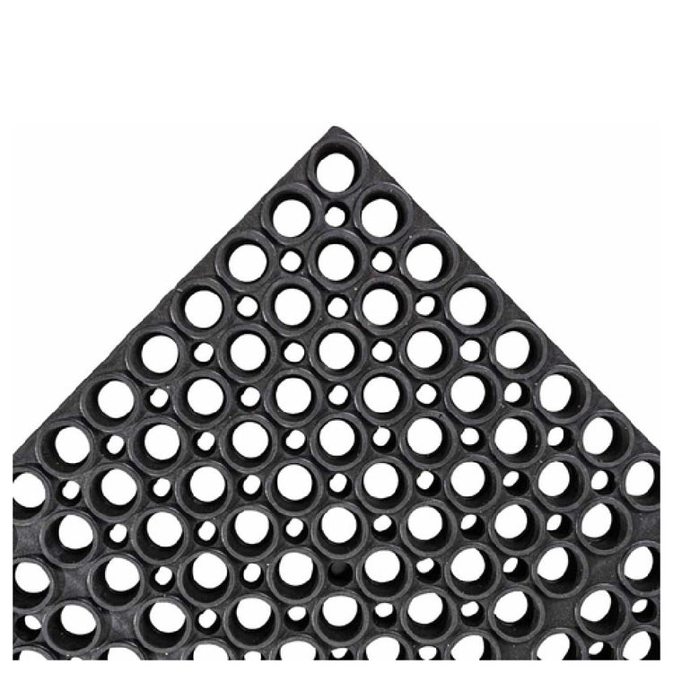The Notrax T12U3929BL T12 San-EZE® Grease-Resistant Floor Mat is a reliable solution for environments prone to grease exposure, designed with specific features tailored for varied industrial applications. Measuring 39 x 29-1/4 inches with a substantial thickness of 7/8 inch, this mat provides robust coverage and support. Its construction from anti-fatigue rubber not only enhances comfort for prolonged standing but also contributes to reducing strain in high-traffic areas. The mat's black color complements diverse industrial environments while its grease-resistant properties ensure durability and extended lifespan under demanding conditions. Certified by the NSF, this floor mat meets stringent public health and safety requirements, making it a suitable choice for kitchens, food processing facilities, and other sectors where hygiene is paramount. The Notrax T12U3929BL T12 San-EZE® mat’s specifications highlight its commitment to quality and functionality, offering a dependable flooring solution that addresses both safety and comfort needs across various industry segments.
