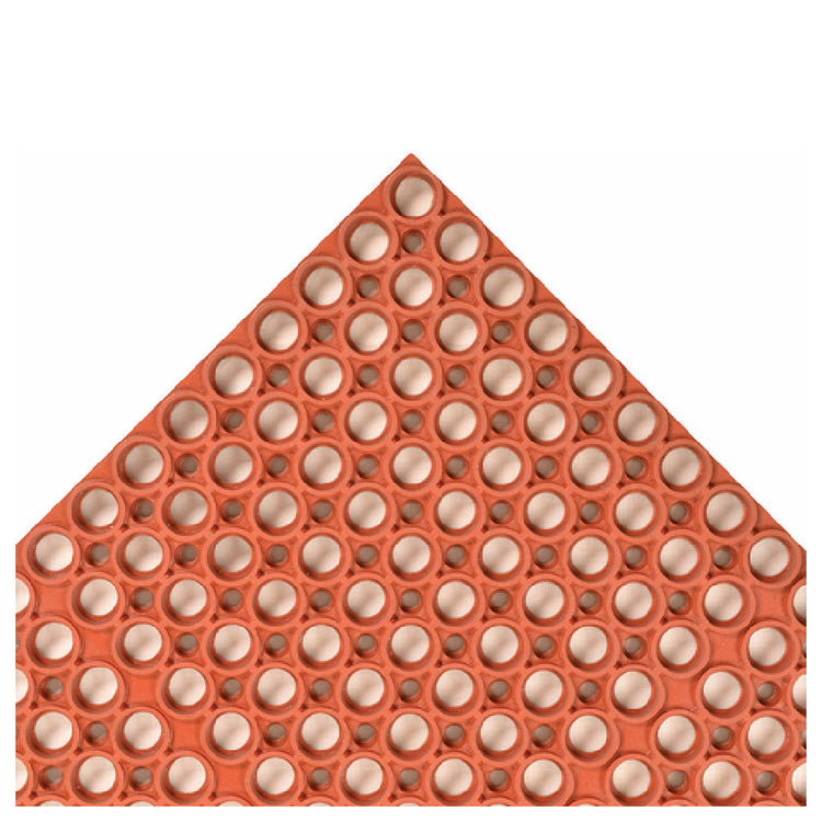 The Notrax T25U0035RD T25 Challenger® Economy Grease-Resistant Floor Mat - 3' x 5', stands out as a versatile safety solution within the industrial sector, focusing on durability and functionality. Boasting a heavy-duty rubber construction with a substantial 3/4" thickness, this floor mat is engineered to withstand high-traffic environments and challenging conditions. Its anti-slip surface enhances workplace safety by reducing slip and fall incidents, crucial for industries such as food service, manufacturing, and workshops where safety is paramount. The mat's effective drainage feature efficiently channels away liquids, further minimizing slipping hazards and helping maintain a clean work environment. Available in an eye-catching red color, it not only serves a practical purpose but also aids in marking designated areas or pathways. This makes the Notrax T25U0035RD an excellent choice for businesses seeking to enhance both safety and organization in their workplaces. Its economy grease-resistant properties make it particularly effective in environments where oils and fats are prevalent, ensuring longevity and sustained performance over time. This floor mat represents a balance of affordability and reliability, meeting the diverse needs of various market segments by providing a robust, safety-oriented flooring solution.