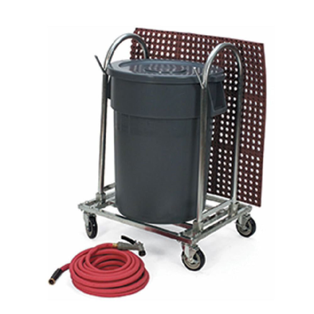 The Notrax T44SKART00 Notrax® Mat Utility Kart is a versatile solution for various industrial environments, boasting a size of 44" x 25" x 30" that accommodates a range of tasks. Its construction features a heavy-duty galvanized steel frame, ensuring durability and longevity in demanding settings. Equipped with bolt-on casters, the utility kart offers enhanced mobility, allowing users to maneuver it effortlessly across different surfaces. A standout feature is its middle section, designed to securely hold a 44-gallon container, making it an efficient option for waste management or storage needs. The removable handles provide additional flexibility, enabling customization and ease of use, particularly in tight spaces or for specialized tasks. This utility kart is ideal for sectors that require robust transport and storage solutions, including manufacturing facilities, warehouses, and maintenance operations, offering practical value and reliability. Its structural integrity and thoughtful design cater to the diverse needs of professionals who require a dependable utility kart to support their operational efficiency.