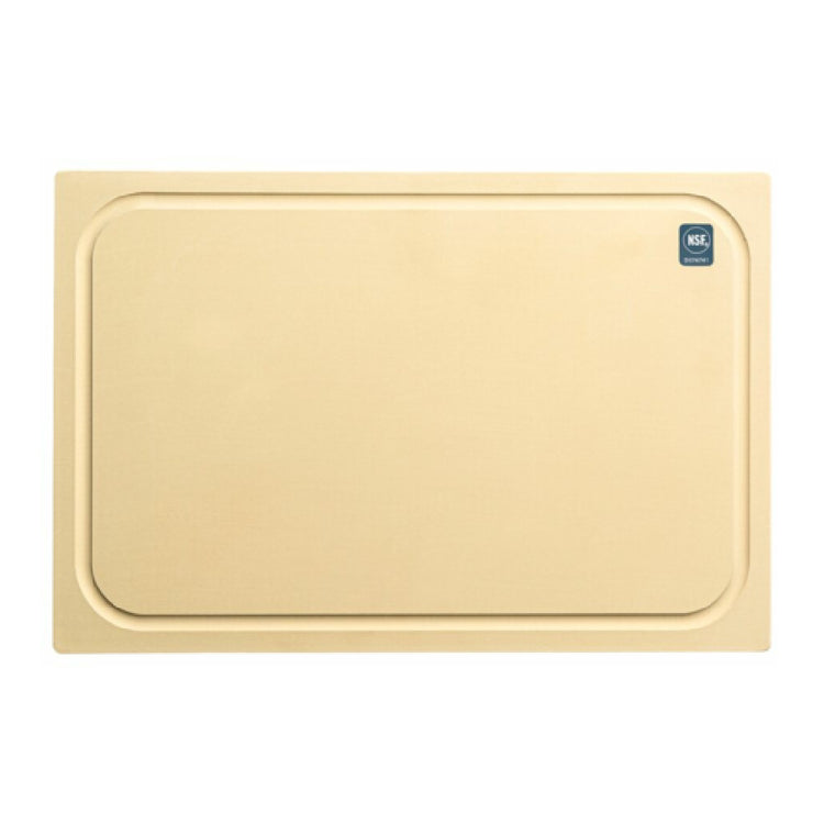 The Notrax T45L3G18BF T45 Sani-TUFF® With Grooves Cutting Board is a robust kitchen essential, meticulously designed for durability and safety. It measures an impressive 18ft x 24ft with a thickness of 3/4 inches, catering to a variety of culinary tasks in large kitchens. This cutting board is uniquely crafted from a MicroStop™ anti-microbial rubber compound, emphasizing its commitment to hygiene by actively inhibiting bacterial growth. Certified by NSF, USDA, and FDA, it meets stringent health and safety standards, making it a reliable choice for both commercial and institutional kitchens. The board's surface can be easily resurfaced by sanding, ensuring a prolonged lifecycle free from cracks, splinters, chips, or swelling, which are common issues with traditional cutting boards. Its buff color and grooved design not only enhance its aesthetic appeal but also provide functional benefits in managing and channeling juices from food. The Notrax T45L3G18BF is tailored to meet the rigorous demands of professional chefs and large-scale food preparation environments, offering unparalleled durability and safety features essential for maintaining kitchen efficiency and cleanliness.