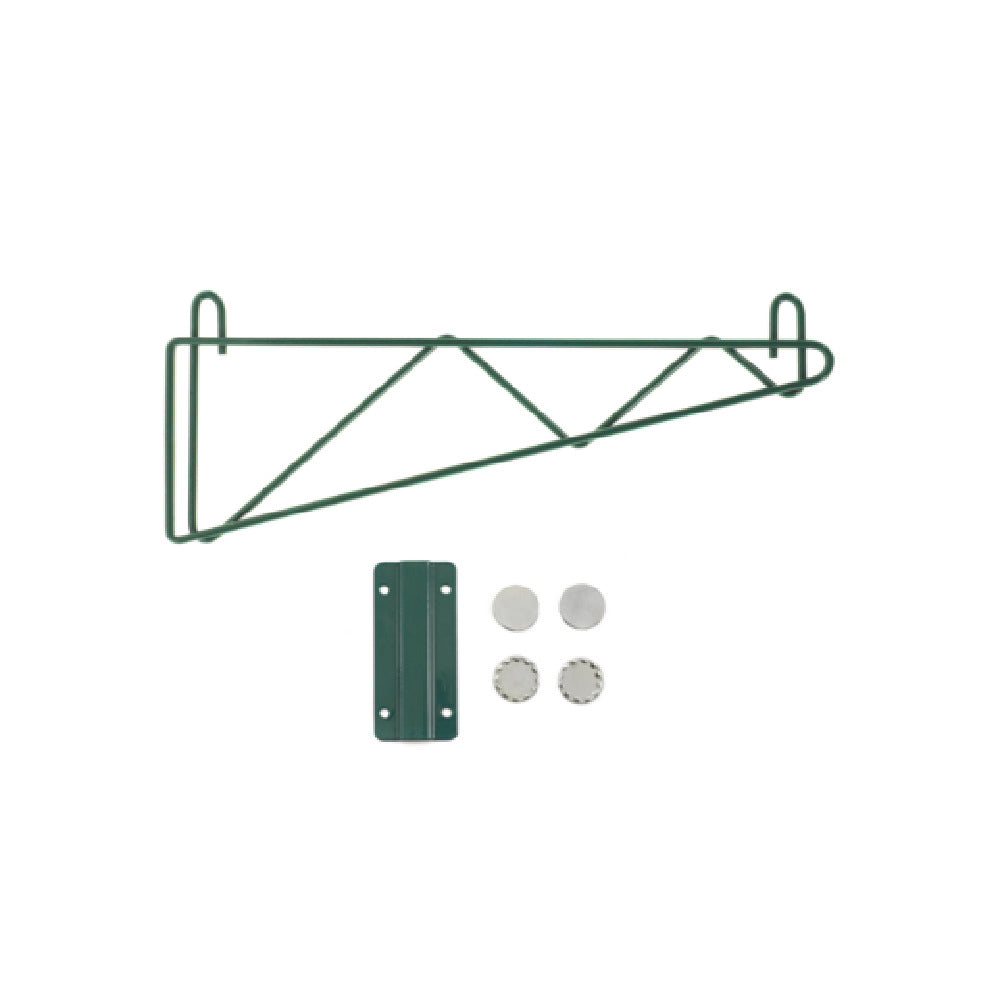The OlympicJ1WD18K Wall Bracket Single 18" is a versatile and reliable support solution, expertly crafted to meet the needs of diverse industry applications. Featuring a green epoxy finish with a robust chromate substrate, this bracket ensures durability and resistance to corrosion, making it suitable for various environments. The single 18-inch design provides ample support for lightweight to moderately heavy installations, accommodating specific structural requirements. This product's NSF certification highlights its compliance with stringent health and safety standards, making it particularly valuable in industries where hygiene is paramount. The OlympicJ1WD18K is ideal for use in both commercial and residential settings, offering a reliable support system for shelving, equipment, or other fixtures. Its technical specifications, including the distinct green epoxy coating, not only enhance its aesthetic appeal but also provide an additional layer of protection. The wall bracket's construction is engineered to withstand environmental challenges, making it a dependable choice for indoor and outdoor applications. With its precision engineering and adherence to industry standards, the OlympicJ1WD18K Wall Bracket Single 18" stands out as a high-quality option for professionals seeking a durable, compliant, and visually pleasing support solution in their projects.