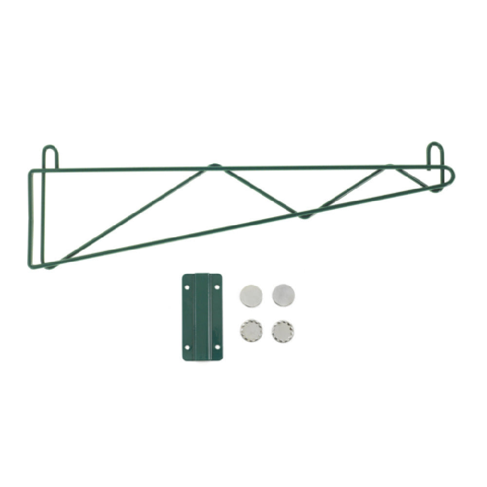 The OlympicJ1WD24K Wall Bracket Single 24" is a robust and reliable solution for various commercial and industrial applications that require secure wall-mounted support. It features a durable green epoxy finish with a chromate substrate, ensuring excellent corrosion resistance and longevity, which is essential for environments that demand high durability and consistent performance. Measuring at an exact single 24-inch span, this wall bracket is designed to meet specific spatial and structural needs, providing a tailored fit for installations that require precise dimensions. The NSF certification of the OlympicJ1WD24K underscores its compliance with stringent public health and safety standards, making it a suitable choice for industries such as food service, healthcare, and other sectors where hygiene and safety are paramount. The technical specification of the green epoxy finish not only enhances its aesthetic appeal but also adds an extra layer of protection against physical and environmental wear, positioning the OlympicJ1WD24K as a versatile and valuable component in both functional and decorative applications across multiple market segments. Its combination of strength, certified safety, and precise sizing makes it an optimal choice for those seeking a reliable wall bracket solution.
