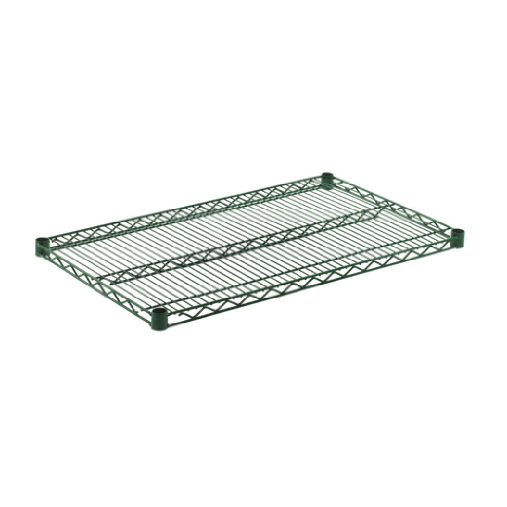 The OlympicJ2136K Shelf Wire 21" X 36" is a meticulously designed shelving solution that is well-suited for a variety of storage needs across different industries. This shelf, with dimensions of 21 inches by 36 inches, is crafted to accommodate diverse storage requirements in both commercial and residential settings. Featuring a green epoxy finish, it provides a robust and protective layer over a durable chromate substrate, ensuring longevity and resistance to corrosion. This makes it particularly beneficial in environments where moisture is present, such as kitchens or warehouses. In addition, the OlympicJ2136K Shelf is NSF certified, highlighting its compliance with rigorous public health and safety standards, making it an ideal choice for food service establishments or healthcare facilities that require high standards of cleanliness and sanitation. The wire construction of this shelf not only offers strength and durability but also allows for efficient air circulation, helping to maintain the quality of stored goods. It is a versatile and reliable shelving option that meets the demands of various market segments, providing both functionality and adaptability in storage solutions.