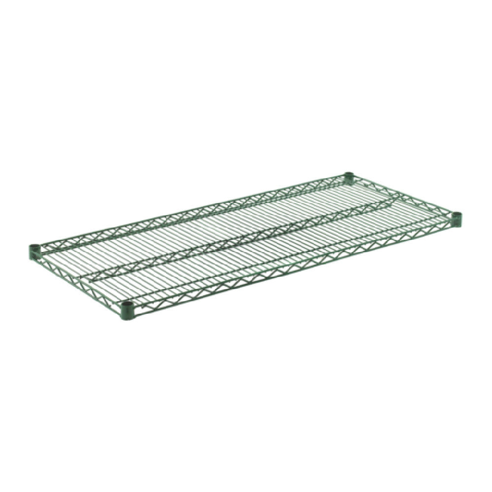 The OlympicJ2148K Shelf Wire 21" X 48" is a meticulously designed shelving solution tailored for various industrial and commercial settings. This shelf, measuring 21 inches by 48 inches, stands out with its green epoxy finish, which not only enhances its aesthetic appeal but also provides a robust protective coating against corrosion. The chromate substrate underneath ensures added durability and strength, making it an ideal choice for environments that demand resilience and longevity. Certified by the National Sanitation Foundation (NSF), this shelf meets rigorous public health and safety standards, making it a reliable option for food service industries and other sectors that prioritize hygiene and quality assurance. The OlympicJ2148K's wire construction allows for efficient airflow, reducing dust accumulation and making it easier to maintain cleanliness. This feature is particularly beneficial in storage areas where air circulation is crucial to preserve the integrity of stored items. Whether used in restaurants, warehouses, or retail spaces, the OlympicJ2148K Shelf Wire offers dependable support and versatility, adapting well to different organizational needs. Its combination of technical specifications and quality construction positions it as a valuable asset across multiple market segments.