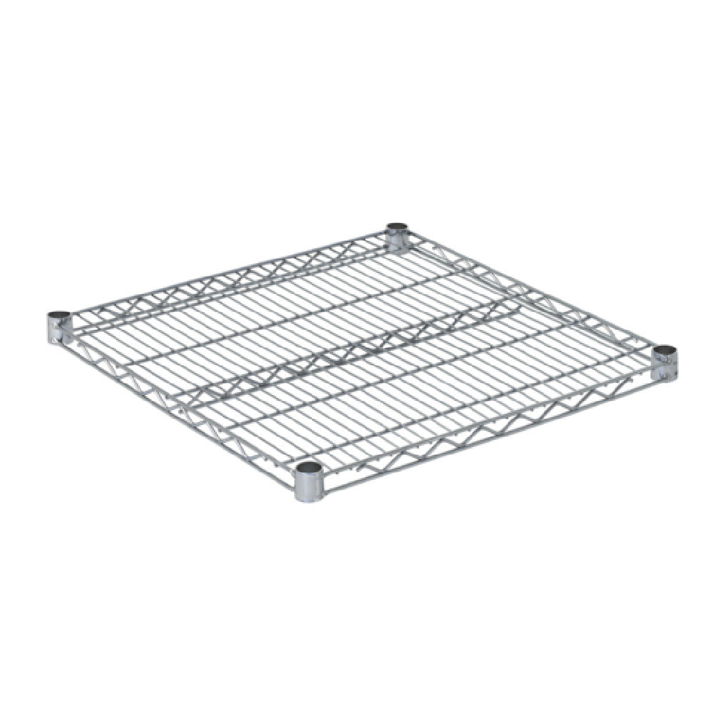 OlympicJ2424C Shelf Wire 24" X 24" is a chromate finish shelving unit designed for versatile storage solutions, particularly suitable for commercial and industrial environments. This NSF-certified shelf measures 24 inches by 24 inches, offering ample space for organizing various items efficiently. The wire construction allows for excellent air circulation, which is crucial in maintaining the integrity of stored goods, thereby reducing dust accumulation and enhancing cleanliness. The chromate finish not only provides a sleek, professional look but also ensures durability and resistance to corrosion, making it an ideal choice for environments with fluctuating temperature and humidity levels. Its robust design supports a significant weight load, catering to different market segments such as food service, retail, and warehouse storage. This shelf is compatible with a variety of shelving systems, allowing for easy integration into existing setups. By combining strength, adaptability, and aesthetic appeal, the OlympicJ2424C Shelf Wire 24" X 24" stands out as a reliable storage solution that meets the rigorous demands of diverse industries, ensuring that operations run smoothly and efficiently.