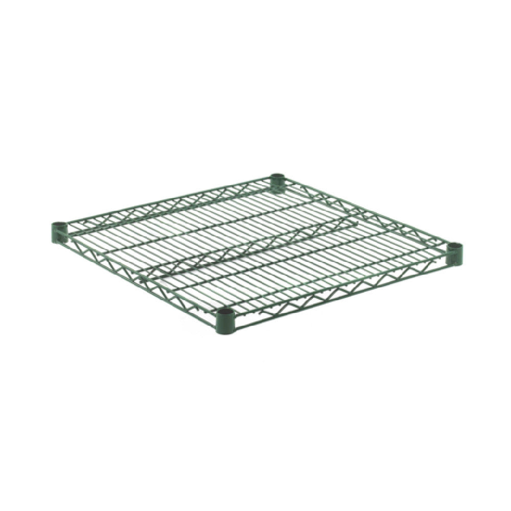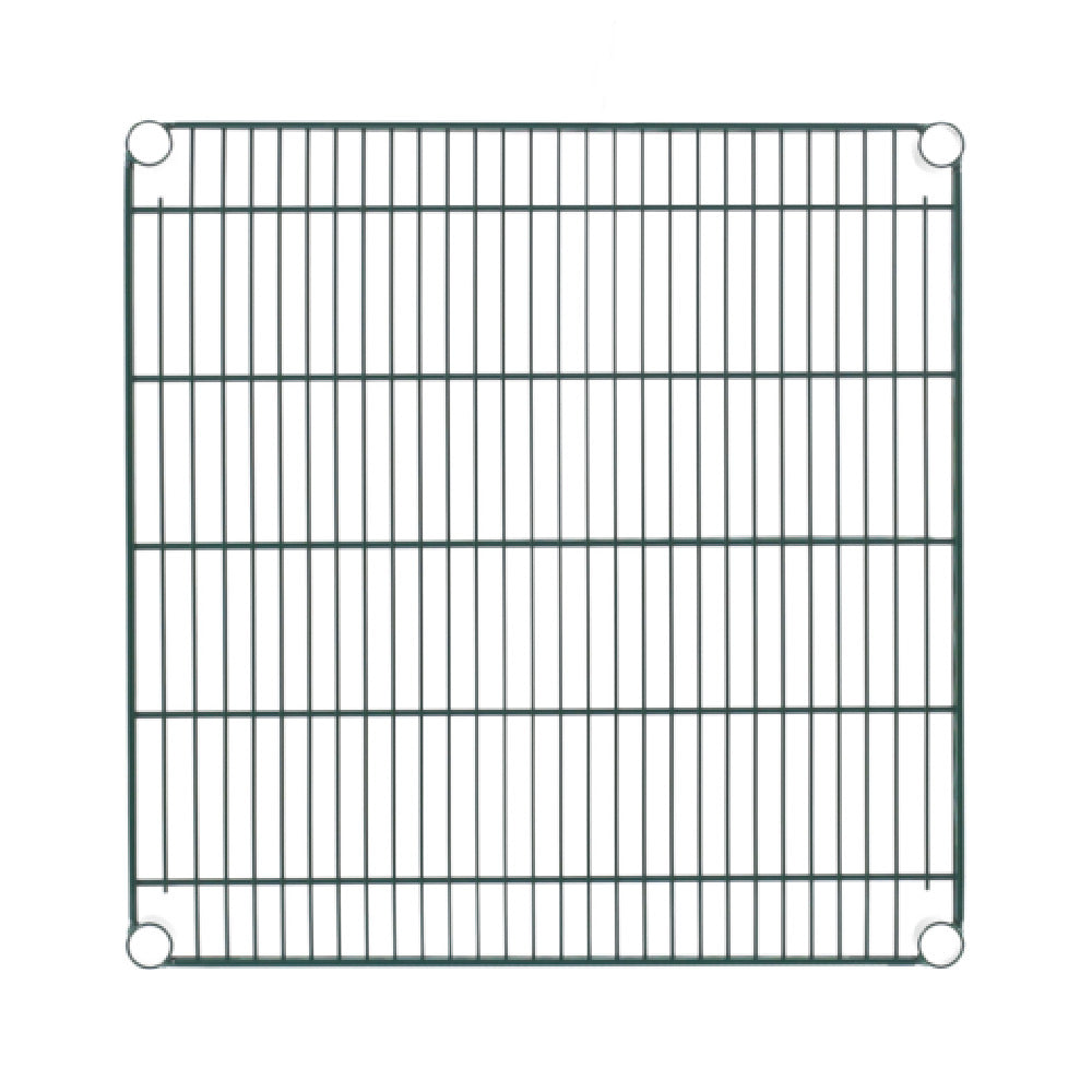 The OlympicJ2424K Shelf Wire 24" X 24" is a meticulously engineered storage solution that caters to a variety of commercial needs. This shelf is characterized by its dimensions of 24 inches by 24 inches, which provide ample storage space while maintaining a compact footprint. The shelf is constructed using a durable wire design, ensuring robust support for stored items while facilitating air circulation to help maintain product freshness. The green epoxy finish, complemented by a chromate substrate, not only enhances the shelf's aesthetic appeal but also offers excellent resistance to corrosion, making it an ideal choice for humid environments. This combination of materials and finishes ensures that the shelf is both long-lasting and easy to maintain. Additionally, the OlympicJ2424K Shelf is NSF certified, which highlights its compliance with health and safety standards necessary for use in food service establishments. This certification assures users of the product's quality and suitability for professional environments. Whether utilized in a restaurant pantry, a retail space, or an industrial setting, the OlympicJ2424K Shelf Wire 24" X 24" delivers reliable performance, making it a valuable addition to any operational setup seeking efficient and durable storage solutions.