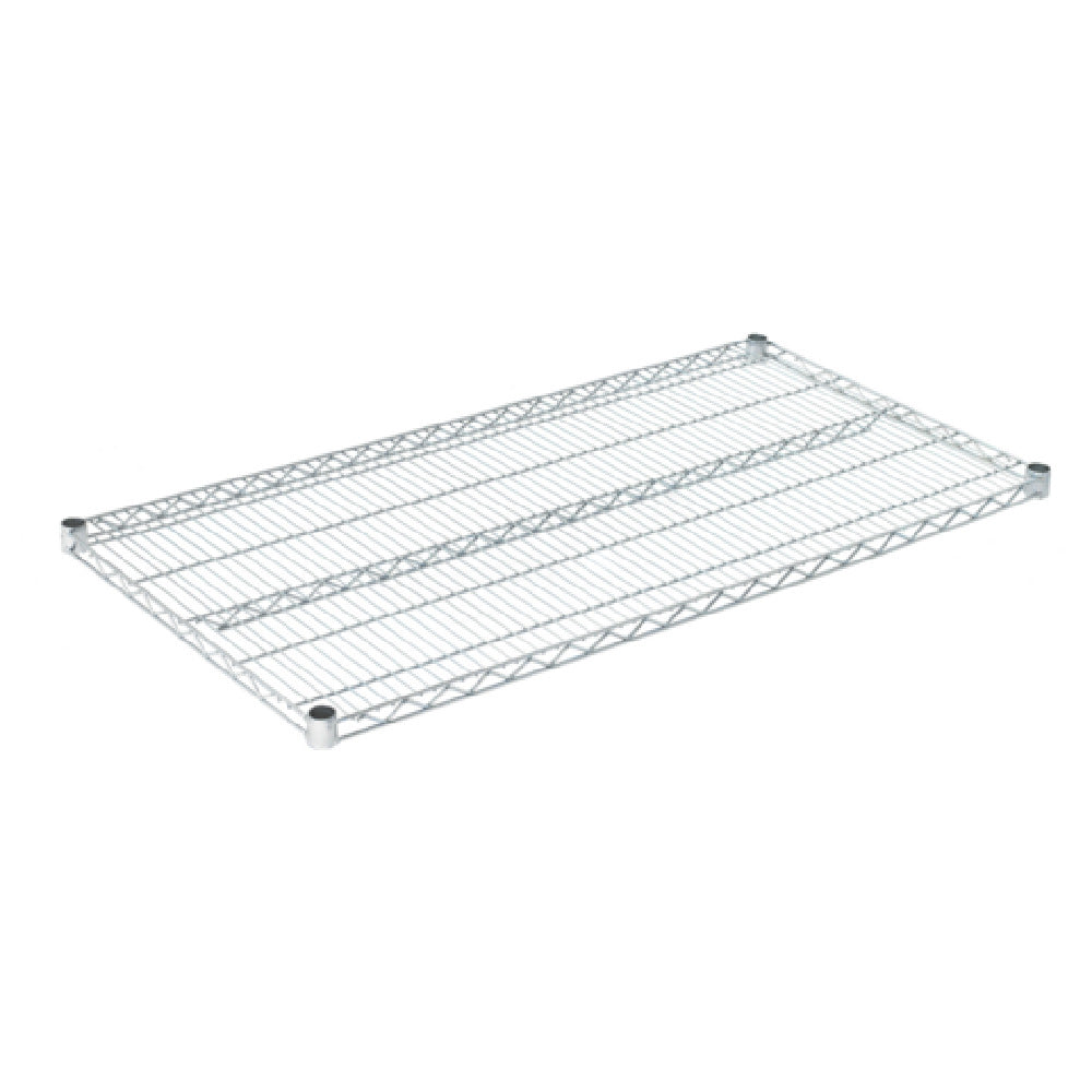 The OlympicJ2448C Shelf Wire 24" x 48" is a durable and versatile wire shelving unit designed to meet the storage needs of various industries. Featuring a robust chromate finish, this shelf unit provides enhanced durability and resistance to corrosion, making it suitable for environments that require high hygiene standards. With dimensions of 24 inches by 48 inches, it offers substantial storage space while maintaining a compact footprint, ideal for optimizing available space in commercial and industrial settings. The NSF certification underscores its compliance with stringent public health and safety standards, ensuring it is a reliable choice for settings such as food service operations, healthcare facilities, and retail environments. The OlympicJ2448C is crafted to support a range of storage applications, offering flexibility in arrangement and organization. Its wire construction allows for air circulation, minimizing dust accumulation and making it easier to keep clean. This makes the shelf suitable for storing perishable goods or sensitive equipment that benefits from a well-ventilated environment. The sleek and functional design of the OlympicJ2448C Shelf Wire makes it a practical choice for businesses seeking efficient and compliant storage solutions, highlighting its role as a valuable component in maintaining organized and operationally efficient spaces.