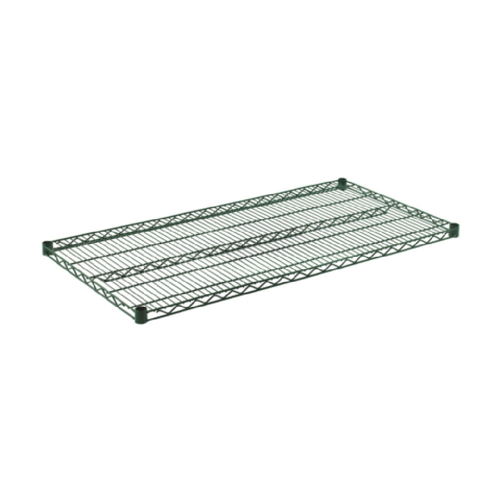 The OlympicJ2448K Shelf Wire 24" x 48" is a versatile and durable shelving solution tailored for a variety of industrial applications. This product features a green epoxy finish with a chromate substrate, providing enhanced durability and resistance to corrosion, making it ideal for use in environments where moisture and humidity are prevalent. The NSF certification of the OlympicJ2448K ensures it meets stringent public health and safety standards, making it a reliable choice for food service industries and other sectors requiring adherence to specific hygiene standards. Measuring 24 inches by 48 inches, this shelf offers ample space for storage and organization, contributing to efficient space management in warehouses, commercial kitchens, and retail settings. The wire construction of the shelf is designed to allow for optimal air circulation, reducing dust accumulation and promoting cleanliness. The OlympicJ2448K Shelf is suitable for diverse market segments, ranging from food service to logistics, owing to its robust build and compliance with industry standards. Its integration of practical design and certification makes it an essential component for businesses aiming to maintain organized and compliant operations.