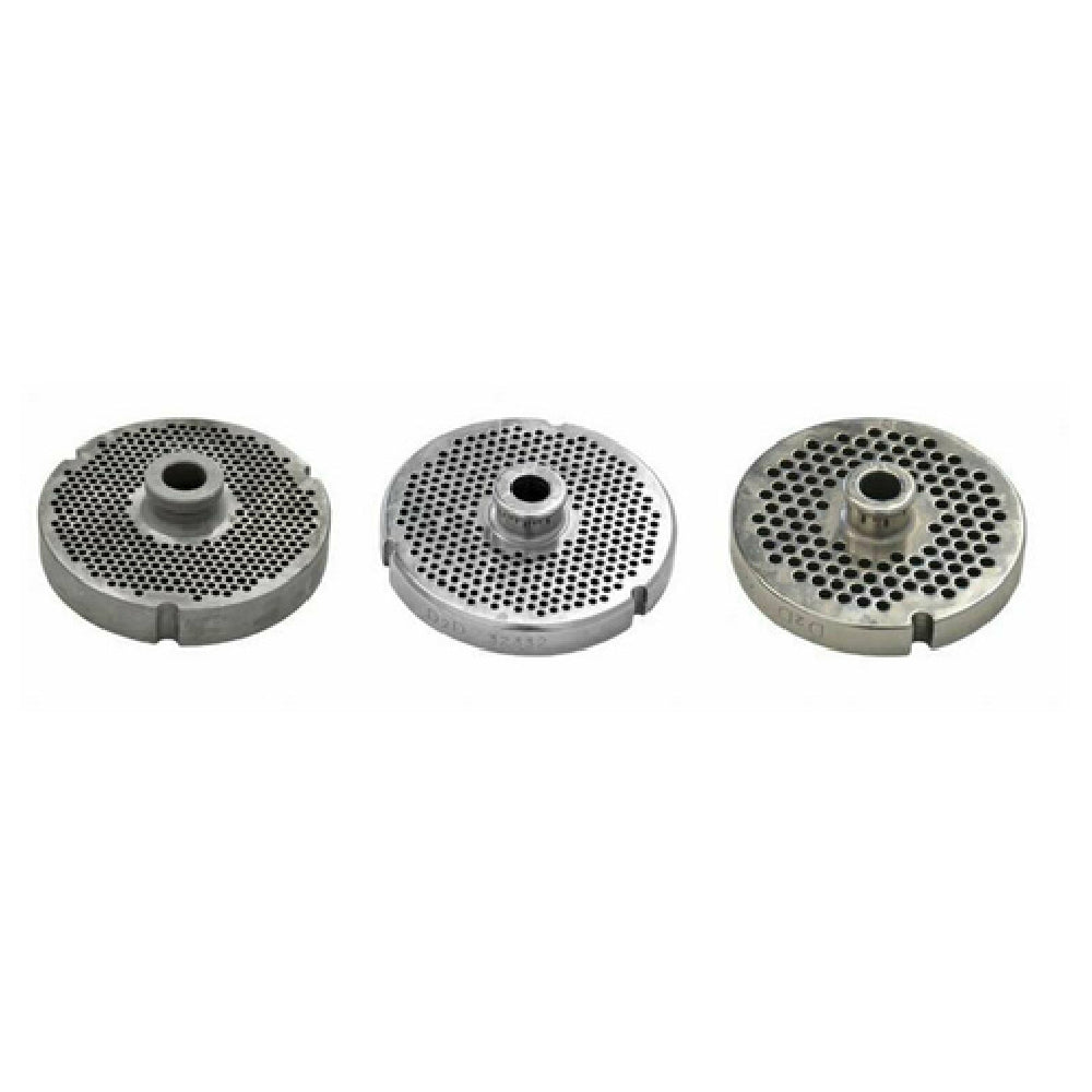 The Omcan 11154 (11154) D2 Machine Plate With Hub #22-3/4" (19.2mm) is a precision-engineered component designed for use in heavy-duty meat processing applications. Crafted from hard steel, this machine plate is known for its exceptional durability and resistance to wear, ensuring long-lasting performance in demanding industrial environments. The plate is precisely measured at 19.2mm, facilitating accurate and efficient cutting operations required in commercial meat processing. The inclusion of a hub enhances its structural integrity and facilitates seamless integration with compatible machinery, making it a reliable choice for professionals in the food processing industry. With its compatibility with #22 machines, this machine plate caters to a wide range of meat grinding requirements, ensuring versatility and adaptability in various processing settings. Its robust construction and precise engineering make the Omcan 11154 machine plate an indispensable asset for butchers, meat processors, and food service establishments seeking to optimize their production processes. Recognized for its quality and consistency, this product is a testament to Omcan USA's commitment to delivering top-tier processing solutions that meet the rigorous standards of the food processing industry.