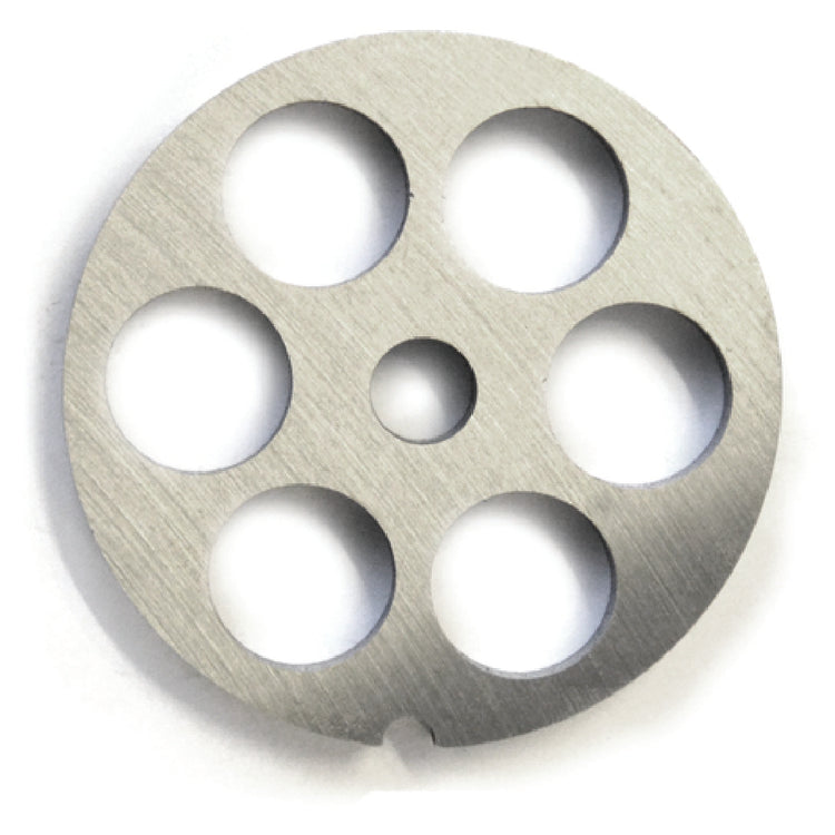 The Omcan 11219 (11219) European Style Machine Plate - Hubless #12, 3/4" (18mm) is a high-quality, hard stainless steel component engineered for precision and durability in various industrial applications. This machine plate is distinguished by its hubless design, which enhances its adaptability across multiple machinery setups, making it a versatile choice for businesses seeking reliable and efficient equipment components. Its compatibility with #12 machinery ensures a broad application scope, particularly in food processing industries where precision is crucial. The plate's 3/4" (18mm) thickness provides a robust and stable structure, facilitating seamless operation under demanding conditions. Omcan's commitment to quality is evident in the use of hard stainless steel, which offers superior resistance to wear and corrosion, thereby extending the lifespan of the component and reducing maintenance costs for users. By integrating the Omcan 11219 into their operational framework, businesses can achieve enhanced performance and reliability, gaining a competitive edge in their respective markets. This product's technical specifications make it an essential component for enterprises prioritizing efficiency and durability in their industrial processes.
