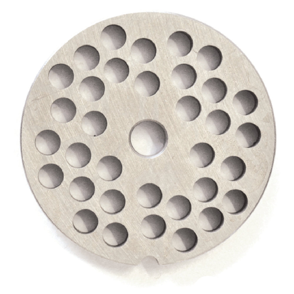 The Omcan 11223 (11223) European Style Machine Plate - Hubless #225/16" (8mm) is crafted from hard stainless steel, ensuring durability and precision for professional-grade cutting and slicing applications. This machine plate is designed without a hub, offering a streamlined performance that is particularly beneficial in high-demand environments. With a size specification of #22 and a 5/16" (8mm) grind, it serves a versatile range of functions across different segments of the food processing industry, including but not limited to, meat processing, where such precision is crucial. Its construction from hard stainless steel not only enhances its longevity but also ensures ease of maintenance and cleaning, making it a practical choice for busy kitchens and processing facilities. The European styling of this machine plate is indicative of its superior engineering and efficiency, providing an edge over standard options in the market. This Omcan model is an excellent choice for businesses seeking reliable and long-lasting equipment that meets the rigorous demands of the food industry. Its technical features underscore its suitability for various applications, making it a valuable component in the machinery of professional kitchens and processing units.