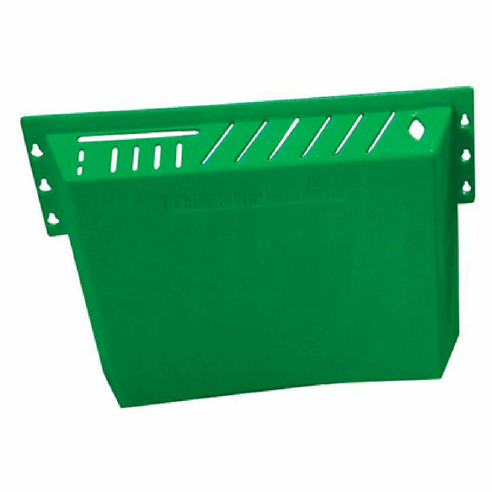 The Omcan 11542 (11542) Knife Rack is a specialized storage solution designed to hold a comprehensive collection of cutting tools, making it an essential accessory for professional kitchens and culinary environments focusing on organization and safety. This knife rack accommodates up to 12 knives, providing ample storage for a variety of blades. In addition to the knife slots, it includes space for one cleaver and one steel, ensuring that all essential tools for cutting, chopping, and sharpening are conveniently accessible. Crafted from durable green plastic, this rack combines functionality with a simple and clean design, making it suitable for various kitchen aesthetics. The material choice also ensures ease of cleaning and maintenance, catering to environments that prioritize hygiene. Whether used in a bustling restaurant kitchen or a culinary school, the Omcan 11542 knife rack supports an organized workspace by safely securing and displaying essential kitchen tools, thereby enhancing efficiency and workflow. Its robust and practical design makes it a valuable addition to any professional setting, aligning with the needs of chefs and culinary professionals who demand a reliable, space-efficient storage method for their cutting implements.
