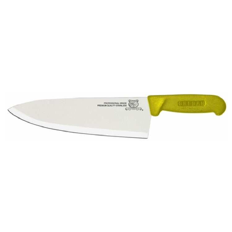 The Omcan 12127 (12127) Chef Knife 10" Medium Blade is a precision-crafted kitchen tool designed for culinary professionals and cooking enthusiasts alike. This chef knife features a 10-inch medium blade, offering a balanced combination of length and maneuverability for versatile cutting tasks. Constructed from high-quality stainless steel, the blade provides exceptional durability and resistance to corrosion, ensuring long-lasting sharpness and performance in demanding kitchen environments. The knife is equipped with a polypropylene handle, ergonomically designed for comfort and control during extended use. The handle's vibrant yellow color not only adds a touch of personality but also aids in quick identification in busy kitchen settings. This thoughtfully designed handle ensures a secure grip, even when wet, making it a reliable choice for professionals working in fast-paced, high-volume kitchens. The Omcan 12127 chef knife is an essential tool for chefs who require precision and efficiency, whether slicing, dicing, or chopping. Its durable construction and user-friendly design make it a valuable addition to any culinary toolkit, aligning with the demands of diverse segment markets within the food industry, from restaurant chefs to catering professionals.