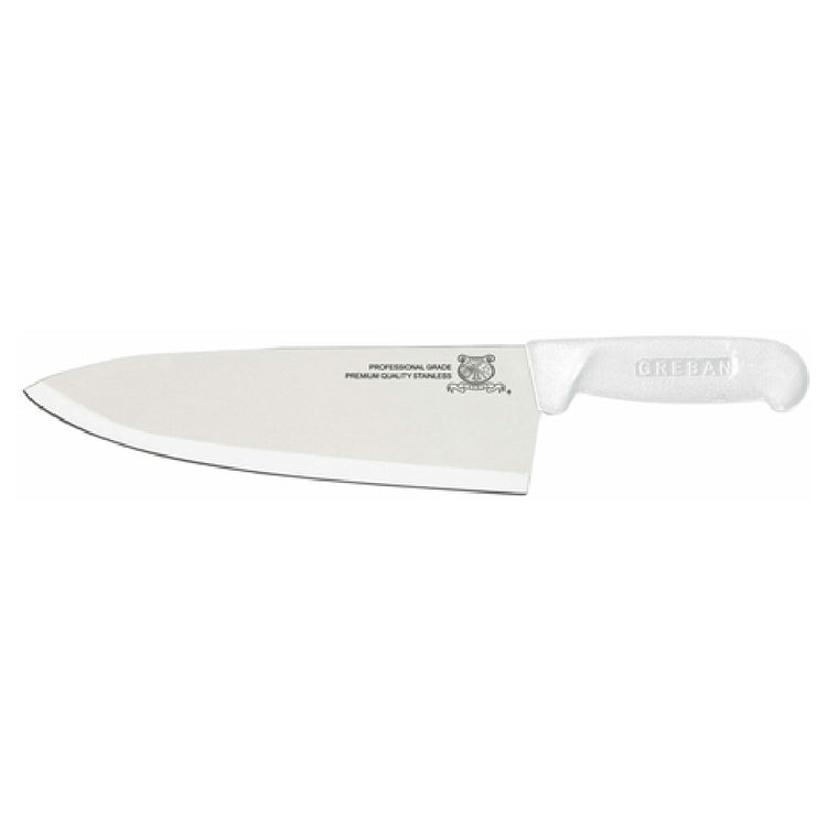 The Omcan 12142 - 12142 Chef Knife 10" Medium Blade is a precision-engineered culinary tool designed to meet the multifaceted demands of professional chefs and culinary enthusiasts alike. This chef knife features a 10-inch medium blade crafted from high-quality stainless steel, offering a perfect balance between durability and sharpness, which is essential for precision slicing and dicing in fast-paced kitchen environments. The stainless steel blade ensures resistance to rust and stains, maintaining its pristine condition even with frequent use. Complementing the blade is a polypropylene white handle that provides a comfortable and secure grip, reducing the risk of slippage during intensive food preparation tasks. This ergonomic design helps in minimizing hand fatigue, allowing chefs to maintain efficiency during extended use. The Omcan 12142 chef knife is an indispensable tool in various sectors of the culinary industry, from bustling restaurant kitchens to gourmet home cooking, offering reliability and performance that chefs of all levels can depend on. Its well-balanced construction and superior materials make it a versatile choice, suitable for a wide array of cutting techniques and culinary applications, ensuring that it meets the high standards expected in professional food preparation settings.