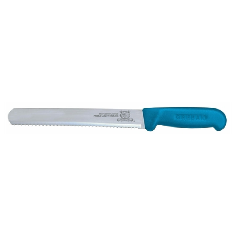 The Omcan 12656 (12656) Slicing Knife 10" Straight Blade is engineered for precision and durability, making it a standout tool in the culinary industry. This slicing knife features a 10-inch straight blade with a wave edge, allowing for seamless and efficient slicing of various food products. The blade's design ensures minimal resistance, providing smooth and consistent cuts, which is essential for both professional chefs and home cooks seeking high-quality performance. The knife is complemented by a polypropylene blue handle, known for its ergonomic design and robust construction, offering a comfortable and secure grip during prolonged use. The blue handle not only provides a visual appeal but also adds an element of safety by making the knife easily identifiable in busy kitchen environments. Ideal for restaurants, catering services, and food preparation facilities, this slicing knife is a versatile tool that meets the demands of different segments within the food service industry. Its combination of a wave edge blade and durable handle ensures that it can withstand the rigors of daily use while maintaining optimal performance. The Omcan 12656 slicing knife is a reliable choice for those in need of a dependable and efficient slicing solution.