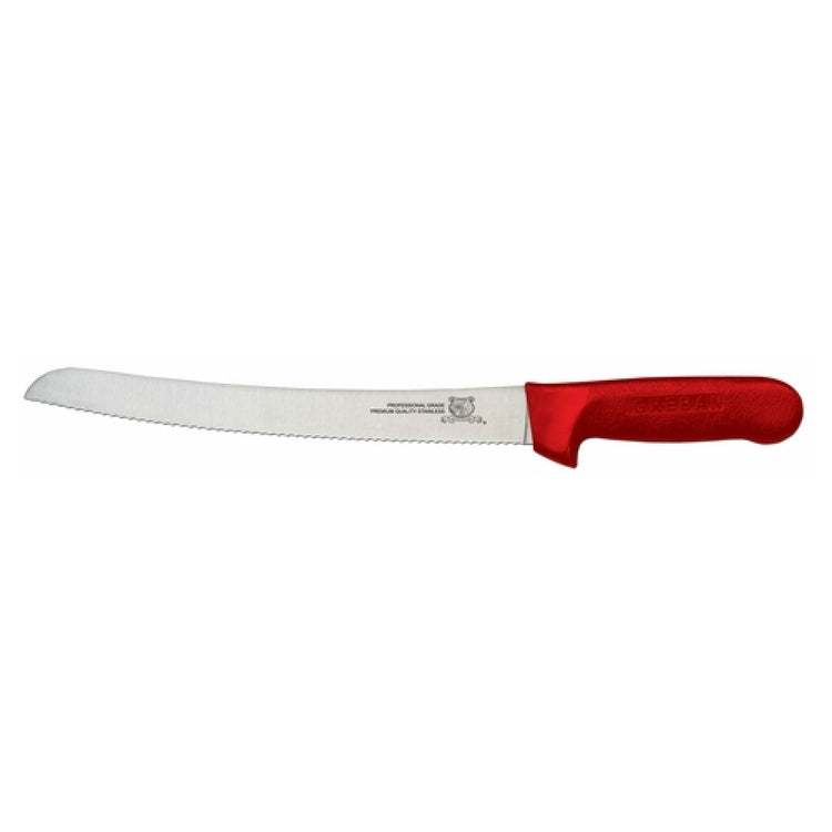The Omcan 12830 (12830) Slicing Knife 10" Narrow Curved Blade Wave Edge is a precision instrument engineered for culinary professionals who require superior slicing performance. This knife features a 10-inch narrow curved blade, which is meticulously crafted to enhance slicing efficiency and control, making it ideal for delicate tasks such as slicing meats and fish with precision. The wave edge design further refines its cutting prowess, allowing for smoother cuts and reducing surface friction. Complementing its high-performance blade is a polypropylene red handle, providing a comfortable grip that ensures safety and ease of use in high-paced kitchen environments. This combination of thoughtful design and quality materials positions the Omcan 12830 slicing knife as a versatile tool in diverse food service settings, from restaurants and catering businesses to butchers and meat processing facilities. The unique attributes of the Omcan 12830 slicing knife cater to professionals who prioritize precision, durability, and ergonomic design in their culinary tools, making it a valuable asset in achieving superior food preparation results across different market segments within the industry. The knife’s specifications, including its narrow blade and wave edge, underscore its capability to handle specialized slicing tasks efficiently.