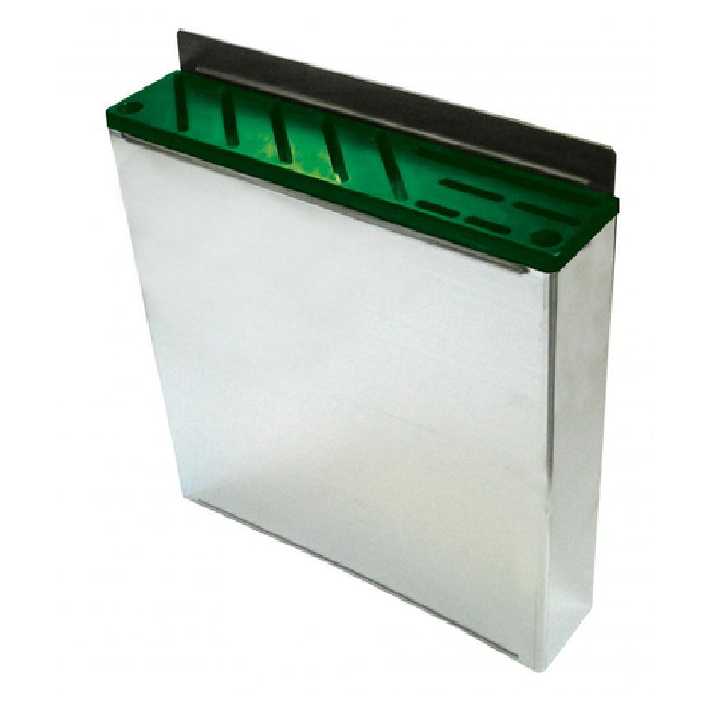 The Omcan 12928 (12928) Knife Rack Small Stainless Steel is a compact yet efficient storage solution for culinary professionals, designed to enhance kitchen organization and safety. This sleek knife rack is constructed from high-quality stainless steel, ensuring durability and longevity in demanding kitchen environments. The distinctive feature of this knife rack is its green plastic insert, which securely accommodates up to 10 knives and 2 steels, making it ideal for both small-scale and bustling commercial kitchens. This design not only ensures that essential cutting tools are always within easy reach but also promotes a tidy and uncluttered workspace. The use of stainless steel not only provides a modern aesthetic appeal but also guarantees resistance to corrosion and easy maintenance, crucial in maintaining hygiene standards. The Omcan 12928 knife rack caters to chefs, culinary students, and food service providers who prioritize efficiency and safety in their operations. Its compact size makes it a versatile addition to kitchens with limited space, while its robust construction meets the demands of high-traffic professional kitchens. By providing a dedicated storage space for knives and steels, this product supports chefs in maintaining their tools, thus enhancing precision and performance in food preparation tasks.